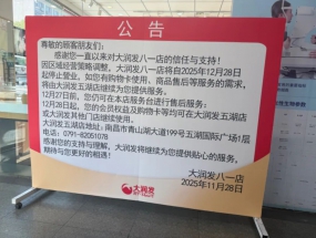 12月1日消息,大潤(rùn)發(fā)八一店近日發(fā)布公告稱(chēng),因區(qū)域經(jīng)營(yíng)策略調(diào)整,該店將于2025年12月28日起停止?fàn)I業(yè)。同時(shí),12月27日前,顧客可...