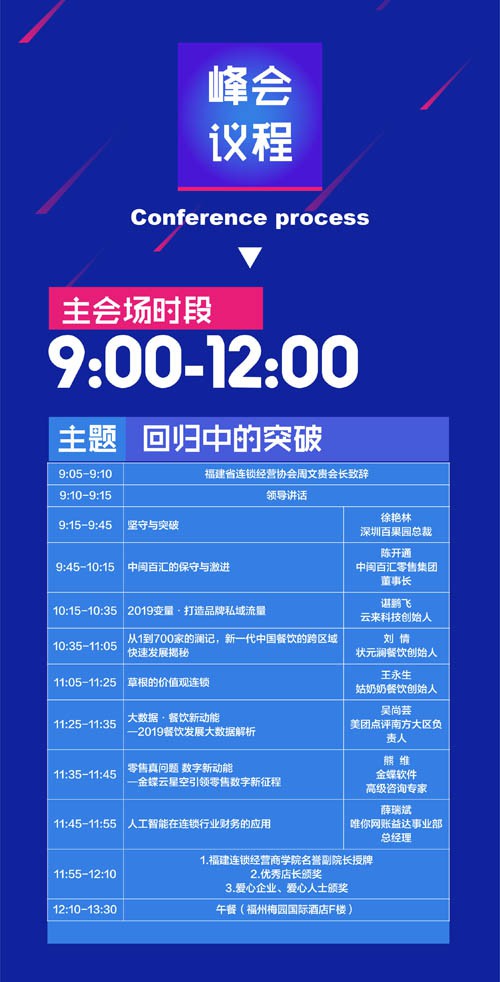 兩年前出現(xiàn)了一個(gè)新名詞,叫做“新零售”。于是有人在數(shù)據(jù)算法上下功夫,有人在掃碼支付上下功夫,有人在物流配送上下功夫,有人在建倉策略上下功夫,有人在場景營造上下功夫,有人在能效體驗(yàn)上下功夫。就象一場大雪,攪得周天寒徹、江河橫溢。 在一番熱鬧之后,人們開始認(rèn)識(shí)到還是要回歸商業(yè)的本質(zhì);貧w到服務(wù),在服務(wù)取得效益、取得發(fā)展。因?yàn)樯虡I(yè)的本質(zhì)就是服務(wù)。 由福建省連鎖經(jīng)營協(xié)會(huì)主辦的“第三屆福建連鎖經(jīng)營品牌發(fā)展峰會(huì)”于2019年5月16日在福州梅園國際大酒店召開!霸诨貧w中突破”,是此次論壇的主題。以突破為目標(biāo)的回歸不是保守,以回歸為基礎(chǔ)的突破不是幻想。 第三屆福建連鎖經(jīng)營品牌發(fā)展峰會(huì)”這是連鎖商業(yè)領(lǐng)域的一次盛會(huì)。它是政府與企業(yè)間的橋梁、企業(yè)與企業(yè)間互動(dòng)合作的平臺(tái)。本次峰會(huì)將引領(lǐng)著零售、餐飲、酒店、服飾等連鎖企業(yè)做更多更深度的思變,積極助力企業(yè)成長,促進(jìn)行業(yè)發(fā)展。 本次會(huì)議以一個(gè)主論壇+兩個(gè)平行分論壇形式舉辦,兩個(gè)平行分論壇分別為餐飲專場分論壇(主題:餐飲融合與求變)、與福建股權(quán)與創(chuàng)業(yè)投資協(xié)會(huì)聯(lián)合舉辦的資本專場閉門論壇(主題:資本助力連鎖蛻變)。會(huì)議還將發(fā)布《2018福建連鎖經(jīng)營發(fā)展報(bào)告》,表彰連鎖業(yè)優(yōu)秀店長、愛心企業(yè)、愛心人士等。 同時(shí),峰會(huì)設(shè)有視頻直播、圖文直播以及多個(gè)商業(yè)媒體平臺(tái)分發(fā)快遞同傳咨詢信息,將干貨傳遞、理念分享做到最大價(jià)值的傳播。 國內(nèi)商業(yè)聯(lián)合會(huì)、國內(nèi)連鎖經(jīng)營協(xié)會(huì)、國內(nèi)百貨商業(yè)協(xié)會(huì)、國內(nèi)商業(yè)企業(yè)管理協(xié)會(huì)等76家協(xié)會(huì)深度覆蓋全國,將實(shí)時(shí)云轉(zhuǎn)播。 福建華鋪集團(tuán)董事長周文貴、沙縣小吃集團(tuán)餐飲連鎖有限公司董事長羅旭、福建連鎖經(jīng)營協(xié)會(huì)創(chuàng)始人兼黨支部書記楊建英等等近百位行業(yè)領(lǐng)航紅人、產(chǎn)業(yè)領(lǐng)航專家將蒞臨現(xiàn)場,匯聚交流。 鳳凰網(wǎng)、國內(nèi)新聞網(wǎng)、新華網(wǎng)國際在線等50多家媒體為本次峰會(huì)提供宣傳報(bào)道等大力支持。 這將是一場精彩紛呈的思想盛宴,為連鎖經(jīng)營品牌未來的發(fā)展之路指明了方向。來“第三屆福建連鎖經(jīng)營品牌發(fā)展高峰論壇”聆聽真知灼見,結(jié)交同業(yè)先進(jìn),共享無限商機(jī)。5月16日,期待您的光臨。 |