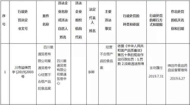 今天,小編從綿陽市場監(jiān)督管理局官網(wǎng)了解到:8月26日,發(fā)布了2019年度行政處罰信息公開表!綿陽5個商家被處罰。 具體處罰信息如下: 這五家分別是:四川星通貿(mào)易有限公司星通貿(mào)易中心經(jīng)營不合格產(chǎn) 品的食品案主要違法事實:經(jīng)營不合格產(chǎn)品的食品案行政處罰的種類和依據(jù):依據(jù)《國內(nèi)人民共和國產(chǎn)品質(zhì)量法》第五十條的規(guī)定作出行政處罰:1.罰款 2.沒收違法所得綿陽市西點商貿(mào)有限公司經(jīng)營不符合食品安全標(biāo)準(zhǔn)的食品案主要違法事實:經(jīng)營不符合食品安全標(biāo)準(zhǔn)的食品案行政處罰的種類和依據(jù):依據(jù)《國內(nèi)人民共和國食品安全法》第一百二十四條第二款、第一款的規(guī)定作出行政處罰:1.免于處罰2.沒收不符合食品安全標(biāo)準(zhǔn)的產(chǎn)品8袋綿陽高新區(qū)華聯(lián)超市經(jīng)營獸藥殘留超過食品安全標(biāo)準(zhǔn)限量的食品案主要違法事實:經(jīng)營獸藥殘留超過食品安全標(biāo)準(zhǔn)限量的食品案行政處罰的種類和依據(jù):依據(jù)《國內(nèi)人民共和國食品安全法》第一百二十四第一款第一項的規(guī)定作出行政處罰:1.免于處罰綿陽高新區(qū)飛揚生活超市經(jīng)營不符合食品安全標(biāo)準(zhǔn)的食品案主要違法事實:經(jīng)營不符合食品安全標(biāo)準(zhǔn)的食品案行政處罰的種類和依據(jù):依據(jù)《國內(nèi)人民共和國食品安全法》第一百二十四第二款第一項的規(guī)定作出行政處罰:1.免于處罰綿陽市金箏蜂業(yè)有限責(zé)任公司生產(chǎn)獸藥殘留超過食品安全標(biāo)準(zhǔn)限量的食品案主要違法事實:生產(chǎn)獸藥殘留超過食品安全標(biāo)準(zhǔn)限量的食品案行政處罰的種類和依據(jù):依據(jù)《食品召回管理辦法》《國內(nèi)人民共和國食品安全法》第一百二十四第一款第一項的規(guī)定作出行政處罰:1.罰款 2.沒收違法所得 3.沒收產(chǎn)品 真的是不查不知道一查嚇一跳!小編希望能夠在高頻的抽檢、嚴(yán)格的處理下,規(guī)范產(chǎn)品經(jīng)營,讓老百姓生活得更放心!作為消費者,我們要拿起法律武器,捍衛(wèi)自己的合法權(quán)益!! (來源/生動保衛(wèi)大米) |