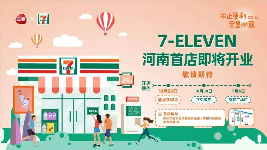 自去年10月份官宣進入河南后,鄭州消費者滿懷期待。 據(jù)小編了解,河南7-Eleven官方宣布,10月23日,河南首家7-11即將開業(yè),首店位于國貿(mào)360店。另據(jù),7ELEVEn河南公眾號顯示,10月30日、11月6日,正弘城店、凱旋廣場店也將分別開業(yè)。 圖片來源:7ELEVEn河南。 |