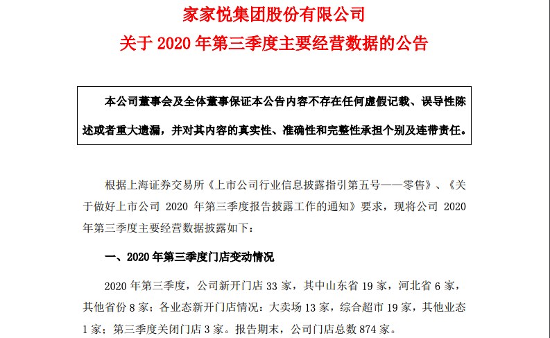 10月31日,家家悅發(fā)布2020年三季報(bào),公司2020年1-9月實(shí)現(xiàn)營業(yè)收入137.63億元,同比增長22.17%,歸屬于上市公司股東的凈利潤為3.89億元,同比增長10.63%,每股收益為0.6400元,同比增長10.34%。 截至2020年第三季度,公司新開門店33家,其中山東省19家,河北省6家,其他省份8家;各業(yè)態(tài)新開門店情況:大賣場13家,綜合超市19家,其他業(yè)態(tài)1家;第三季度關(guān)閉門店3家。報(bào)告期末,公司門店總數(shù)874家。 |