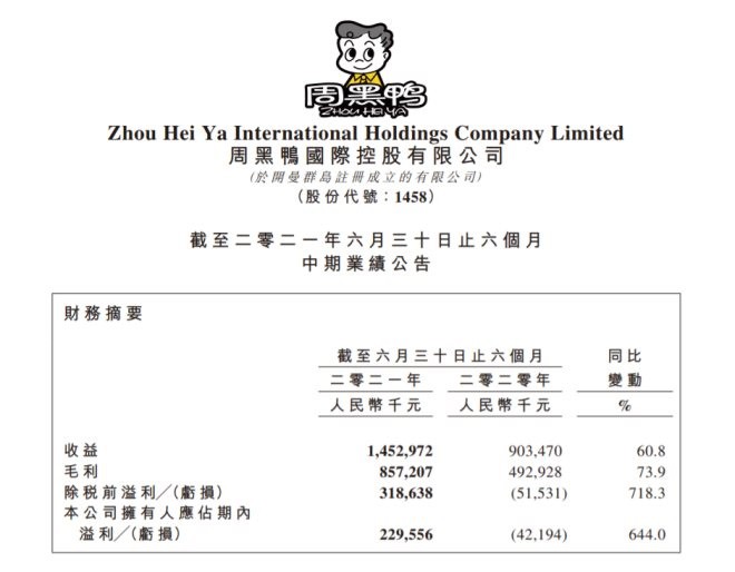 8月24日晚間,周黑鴨發(fā)布2021年半年度報(bào)告顯示,周黑鴨實(shí)現(xiàn)營(yíng)收14.53億元,同比增長(zhǎng)60.82%;歸屬上市公司股東的凈利潤(rùn)為2.30億元,同比大增644.05%;周黑鴨互聯(lián)網(wǎng)O&O業(yè)務(wù),即線上及自營(yíng)外賣業(yè)務(wù),貢獻(xiàn)收入同比增長(zhǎng)29.5%。 報(bào)告期內(nèi),周黑鴨已成功推出16款單品,新品貢獻(xiàn)收入超人民幣2.5億元,銷售占比持續(xù)提升,二季度占比近20%。 2021年上半年,周黑鴨繼續(xù)深入推進(jìn)「直營(yíng)+特許經(jīng)營(yíng)」商業(yè)模式,著力發(fā)展特許經(jīng)營(yíng)業(yè)務(wù),積極拓展特許經(jīng)營(yíng)門店,布局空白市場(chǎng)并進(jìn)一步提升已進(jìn)駐區(qū)域的門店覆蓋率;同時(shí)優(yōu)化門店結(jié)構(gòu),完善全國(guó)門店網(wǎng)絡(luò),滿足消費(fèi)者購(gòu)買的沖動(dòng)性和便利性需求。 截至2021年6月30日,周黑鴨共計(jì)接收超過3.8萬余份特許經(jīng)營(yíng)申請(qǐng)。2021年上半年,周黑鴨新開特許經(jīng)營(yíng)門店511家,新進(jìn)駐45個(gè)城市。截至2021年6月30日,周黑鴨門店總數(shù)達(dá)2,270家,其中直營(yíng)門店1,161家,特許經(jīng)營(yíng)門店1,109家,已覆蓋中國(guó)26個(gè)省、自治區(qū)及直轄市內(nèi)的212個(gè)城市。 |