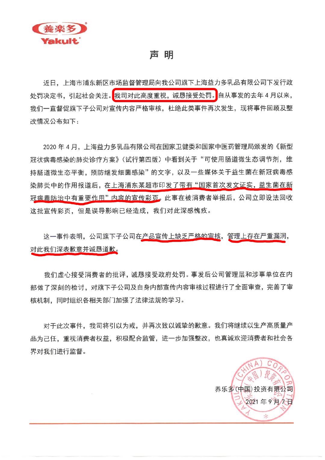 近日,養(yǎng)樂(lè)多因宣傳“益生菌在新冠病毒防治中有重要作用”等處罰事由被罰款45萬(wàn)元。 7日,@養(yǎng)樂(lè)多活性乳酸菌 微博發(fā)布消息稱,養(yǎng)樂(lè)多對(duì)此高度重視,誠(chéng)懇接受處罰。自從事發(fā)的去年4月以來(lái),養(yǎng)樂(lè)多一直督促旗下子公司對(duì)宣傳內(nèi)容嚴(yán)格審核,杜絕此類事件再次發(fā)生。 |