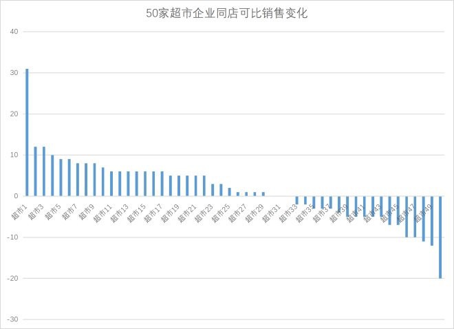 7月8日,根據(jù)中國(guó)連鎖經(jīng)營(yíng)協(xié)會(huì)(簡(jiǎn)稱“CCFA”)采購(gòu)專業(yè)委員會(huì)對(duì)全國(guó)50家超市企業(yè)(含43家中國(guó)連鎖超市Top100企業(yè))統(tǒng)計(jì)數(shù)據(jù)顯示,今年6月,超市企業(yè)可比、同比銷(xiāo)售增長(zhǎng)多于下降。 從同店可比銷(xiāo)售指標(biāo)看,此次統(tǒng)計(jì)中,有29家超市企業(yè)可比銷(xiāo)售實(shí)現(xiàn)增長(zhǎng);3家超市企業(yè)同店可比銷(xiāo)售與去年同期持平;18家超市企業(yè)出現(xiàn)下降。整體來(lái)看,同店可比銷(xiāo)售增長(zhǎng)平均幅度超過(guò)下降幅度。 從門(mén)店銷(xiāo)售同比指標(biāo)看,有33家超市企業(yè)的門(mén)店銷(xiāo)售相比去年同期實(shí)現(xiàn)增長(zhǎng);17家超市企業(yè)出現(xiàn)下降。 其中,有27家超市企業(yè)的同店可比銷(xiāo)售、門(mén)店同比銷(xiāo)售都實(shí)現(xiàn)了雙增長(zhǎng),有15家超市企業(yè)的同店可比銷(xiāo)售、門(mén)店同比銷(xiāo)售出現(xiàn)雙降。 據(jù)悉,今年6月,被統(tǒng)計(jì)的50家超市企業(yè)中有31家企業(yè)開(kāi)店數(shù)量多于閉店數(shù)量。 |