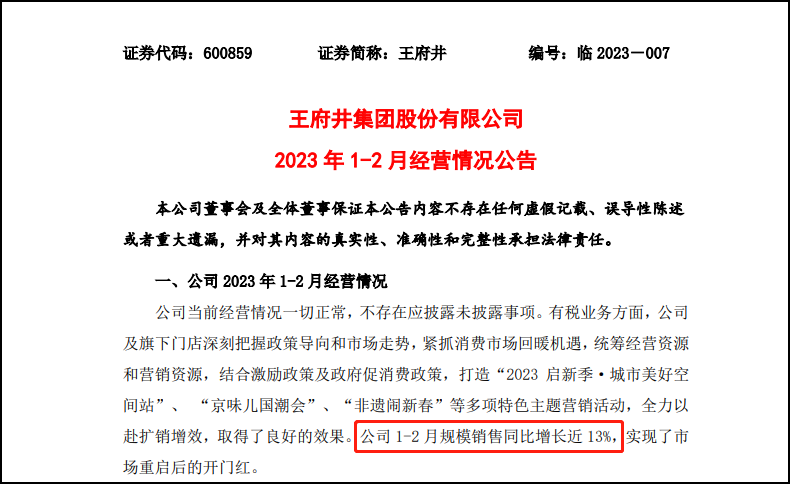 3月12日消息,王府井今日發(fā)布今年1-2月經(jīng)營情況公告,該公司1-2月規(guī)模銷售同比增長近13%,實(shí)現(xiàn)了市場(chǎng)重啟后的開門紅。 公告顯示,分業(yè)態(tài)看,公司百貨、奧萊及購物中心業(yè)態(tài)受消費(fèi)復(fù)蘇的影響,均較同期實(shí)現(xiàn)了增長,奧萊和購物中心業(yè)態(tài)受新生活方式消費(fèi)的帶動(dòng),呈現(xiàn)出較為明顯的恢復(fù)態(tài)勢(shì),其中奧萊業(yè)態(tài)規(guī)模銷售同比超26%,購物中心業(yè)態(tài)規(guī)模銷售同比增長近10%。 全渠道業(yè)務(wù)方面,公司持續(xù)推動(dòng)旗下門店通過直播、微商城、微信群、企業(yè)微信、小紅書推廣等多種銷售及導(dǎo)流方式,為經(jīng)營提供大力支持,公司1-2月線上銷售同比大幅增長近50%。 公告指出,公司目前正在加快推進(jìn)王府井國際免稅港后續(xù)籌備工作,確保項(xiàng)目于4月上旬正式對(duì)外營業(yè),預(yù)計(jì)將引進(jìn)免稅品牌近300家,涵蓋九大經(jīng)營品類。 |