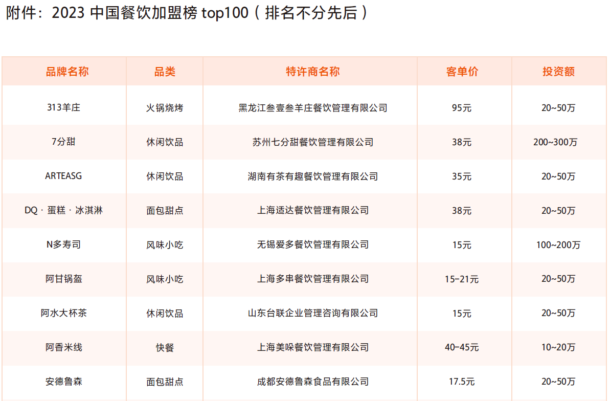 4月12日,中國(guó)連鎖經(jīng)營(yíng)協(xié)會(huì)(簡(jiǎn)稱(chēng)CCFA)聯(lián)合美團(tuán)于上海正式發(fā)布“2023中國(guó)餐飲加盟品牌TOP100”(下稱(chēng)“餐飲加盟TOP100”),榜單覆蓋小吃快餐、休閑飲品、火鍋燒烤等六大餐飲品類(lèi)。 今年的榜單中,既有此前連續(xù)四年入選的楊國(guó)福麻辣燙、蜜雪冰城等11家品牌再度入選,也有瑞幸咖啡、袁記云餃、迷你椰等16家加盟品牌首次入選。從地域分布看,上海地區(qū)上榜的品牌數(shù)繼續(xù)領(lǐng)跑全國(guó),成都位居第二。同時(shí),三線及以下城市五年連鎖化率提升約8個(gè)百分點(diǎn)。 |