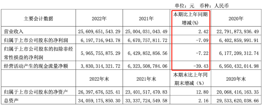 4月25日晚,海天味業(yè)發(fā)布2022業(yè)績報告,顯示2022年營業(yè)收入256.10億元,同比增長2.42%;歸屬于上市公司股東的凈利潤61.98億元,同比減少7.09%。報告期內(nèi),海天繼續(xù)保持在調(diào)味品賽道的龍頭領(lǐng)先地位,穩(wěn)居業(yè)內(nèi)第一。 在品類方面,2022年,海天味業(yè)的核心品類醬油、調(diào)味醬、蠔油的營收均有下滑。其中,海天味業(yè)的拳頭產(chǎn)品醬油在過去一年的收入約為138.61億元,同比下滑2.3%;調(diào)味醬的收入約為25.84億元,同比下滑3.07%;蠔油的收入約為44.17億元,同比下滑2.54%。 而海天旗下包含食醋、料酒、火鍋底料等在內(nèi)的其他品類,營收約為29.32億元,同比增長32.61%。 在渠道方面,海天線上渠道營收大增40.39%,約為9.89億元;線下渠道的營收約為228.05億元,同比下降0.38%。 值得注意的是,海天在年報中提到了新一年的目標:2023年計劃營業(yè)收入目標為281.7億元,歸母凈利目標為68.2億元。 |