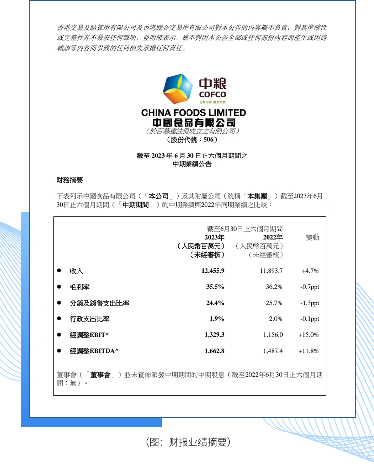 8月28日,中國食品(HK:00506)披露了2023年中期業(yè)績報(bào)告。2023年上半年,得益于持續(xù)優(yōu)化業(yè)務(wù)結(jié)構(gòu)和數(shù)字化轉(zhuǎn)型,中國食品銷售收入124.6億(單位:人民幣,下同),同比增長4.7%,期內(nèi)溢利從去年同期的8.8億元提升至本期的10.2億元。面對原材料價(jià)格波動(dòng),公司精細(xì)化運(yùn)營力促經(jīng)營利潤率保持平穩(wěn)健康水平,經(jīng)營利潤率達(dá)10.67%,較去年有所提升。 今年,中國食品延續(xù)“提質(zhì)、增效、創(chuàng)新、體系、開放、綠色”的經(jīng)營理念, 貫徹發(fā)展全品類飲料業(yè)務(wù),同時(shí)推動(dòng)創(chuàng)新業(yè)務(wù)的戰(zhàn)略布局,全面落實(shí)綠色可持續(xù)發(fā)展理念,繼續(xù)發(fā)揮“干拼贏”的企業(yè)精神,推動(dòng)實(shí)現(xiàn)高質(zhì)量、可持續(xù)的發(fā)展目標(biāo),進(jìn)一步提升公司核心競爭力,增強(qiáng)經(jīng)營發(fā)展韌性,實(shí)現(xiàn)高質(zhì)量發(fā)展。中國食品董事長兼總經(jīng)理慶立軍表示,公司將繼續(xù)堅(jiān)持精細(xì)化管理,全力推動(dòng)提質(zhì)增效,并以創(chuàng)新驅(qū)動(dòng)發(fā)展為核心,加大力度整合資源優(yōu)勢,縱深推進(jìn)企業(yè)改革,提供更多優(yōu)質(zhì)產(chǎn)品和服務(wù),滿足人民群眾日益增長的美好生活需要。 對于中國食品連續(xù)多年保持業(yè)績平穩(wěn)增長,中金公司在此前發(fā)布的研究報(bào)告中表示“看好”,且維持目標(biāo)價(jià)3.8 港幣不變,對應(yīng)12.1/11.0 倍 2023/24年市盈率和29%的上行空間,給予維持跑贏行業(yè)的評級。 始終以消費(fèi)者為中心 品類持續(xù)創(chuàng)新升級 從無糖汽水興起到果汁復(fù)蘇,再到茶咖當(dāng)紅,飲料市場新品布局持續(xù)提速。從品類看,國內(nèi)果汁行業(yè)延續(xù)近年復(fù)蘇勢頭,果粒橙和重點(diǎn)新品果汁氣泡飲獲得消費(fèi)者喜愛,帶動(dòng)中國食品果汁品類收入同比取得雙位數(shù)增幅。 上半年,中國食品在經(jīng)營區(qū)域內(nèi)推動(dòng)美汁源香檸氣泡飲等新品上市,該產(chǎn)品零糖零脂、真實(shí)果汁加氣泡,并添加鋅、煙酸等成分,補(bǔ)充每日營養(yǎng)攝入,憑借健康無負(fù)擔(dān)的創(chuàng)新點(diǎn)頗受年輕消費(fèi)者的喜愛。 除果汁品類外,汽水品類依然保持增長且產(chǎn)品創(chuàng)新進(jìn)一步加強(qiáng)。期內(nèi),可口可樂全新推出的草莓味汽水,以及以游戲?yàn)殪`感的限定產(chǎn)品“英雄登場”的上市,以產(chǎn)品創(chuàng)新贏得更多消費(fèi)者青睞。與此同時(shí),得益于公司在旅游、餐飲等重點(diǎn)渠道的提前布局,汽水產(chǎn)品結(jié)構(gòu)得到進(jìn)一步優(yōu)化。期內(nèi),公司經(jīng)營區(qū)域內(nèi)汽水品類市占率保持逾50%,繼續(xù)拋離主要競品。 此外,上半年,Costa咖世家即飲咖啡品牌市場份額已逾10%,保持在重點(diǎn)市場即飲咖啡的第二品牌地位。據(jù)悉,該系列產(chǎn)品自2020年在中國上市以來持續(xù)火爆,被全球可口可樂公司稱贊為“上市不到三年的新品已經(jīng)超越很多發(fā)展了十幾、二十年的品牌”。 提質(zhì)增效積極求變 數(shù)寫高質(zhì)量發(fā)展新答卷 受國際貨幣政策和國內(nèi)需求強(qiáng)勁等因素影響,國際大宗商品價(jià)格出現(xiàn)一定波動(dòng)。上半年,得益于積極實(shí)施的一系列優(yōu)化整合措施,尤其是生產(chǎn)物流數(shù)字化等項(xiàng)目,中國食品以高質(zhì)量的提質(zhì)增效對沖原材料成本波動(dòng),毛利率穩(wěn)定控制在35.5%。 以投產(chǎn)1周年的中糧可口可樂貴州廠為例,該廠建成3條最先進(jìn)的智能自動(dòng)化生產(chǎn)線,配備了MDS數(shù)字化生產(chǎn)線系統(tǒng)、WMS智能倉儲管理系統(tǒng)、L2C物流管理系統(tǒng)等數(shù)字化管理工具,生產(chǎn)管理邁向智能化、數(shù)字化階段,生產(chǎn)效能大大提升。 目前,依托數(shù)字化賦能,中國食品實(shí)現(xiàn)從原材料采購、生產(chǎn)、成品,直到送達(dá)終端客戶的全流程精準(zhǔn)把控,實(shí)行端到端的管理,全流程效率不斷提升,降本增效取得階段性成果,不斷強(qiáng)化正向循環(huán)的數(shù)字化發(fā)展能力,全面助力高質(zhì)量生產(chǎn)與經(jīng)營。 ESG戰(zhàn)略取得新進(jìn)展 長期創(chuàng)造高質(zhì)量價(jià)值 2023年是中國食品系統(tǒng)性施行ESG戰(zhàn)略元年。在中國食品發(fā)布的《中國食品有限公司環(huán)境、社會及管治白皮書》中制定了2023年、2025年和2030年的階段性ESG目標(biāo),提出了“CARE”的ESG戰(zhàn)略核心,形成中國食品清晰的ESG工作藍(lán)圖,并從應(yīng)對氣候變化、環(huán)境保護(hù)、質(zhì)量安全、供應(yīng)鏈、社區(qū)發(fā)展等諸多領(lǐng)域積極踐行社會責(zé)任,不斷向更高質(zhì)量、更可持續(xù)的發(fā)展新階段邁進(jìn)。 與此同時(shí),ESG正成為中國食品與各版塊業(yè)務(wù)之間的價(jià)值紐帶。隨著ESG白皮書的披露,公司各生產(chǎn)流通環(huán)節(jié)將不斷強(qiáng)化對環(huán)境、社會責(zé)任及公司治理的發(fā)展與改進(jìn),將社會價(jià)值表達(dá)充分融入商業(yè)場景,繼續(xù)推動(dòng)中國食品成為可持續(xù)發(fā)展領(lǐng)域的領(lǐng)軍者。 展望未來,中國食品表示,隨著各類積極政策信號不斷釋放,經(
