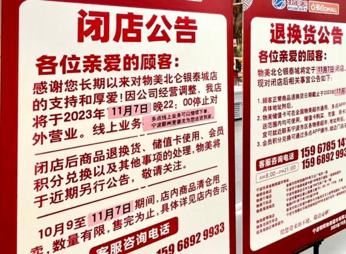 | 近日,物美北侖銀泰店發(fā)布《閉店公告》稱,宣布將于11月7日停業(yè)。公告指出,因公司經(jīng)營(yíng)調(diào)整,我店將于2023年11月7日22:00停止對(duì)外營(yíng)業(yè)。多點(diǎn)線上業(yè)務(wù)可以繼續(xù)下單,寧波鄞州麥德龍為您送貨到家。閉店后,商品退換貨、儲(chǔ)值卡使用、會(huì)員積分兌換,以及其他事項(xiàng)的處理,物美將于近期另行公告。10月9日至11月7日,店內(nèi)商品清倉(cāng)甩賣,數(shù)量有限,售完為止,具體詳見(jiàn)店內(nèi)告示。資料顯示,寧波北侖銀泰店于2016年11月開(kāi)業(yè),營(yíng)業(yè)面積超10000平方米,迄今營(yíng)業(yè)僅8年時(shí)間。(甬派客戶端) |