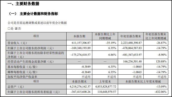 | 10月26日,人人樂發(fā)布2023年第三季度業(yè)績顯示,公司第三季度人人樂實(shí)現(xiàn)營業(yè)收入約6.11億元,同比下降35.19%;虧損達(dá)1.69億元,較去年同期有所收窄。前三季度,人人樂實(shí)現(xiàn)營業(yè)收入22.23億元,同比減少26.87%;虧損達(dá)4.78億元,較去年同期進(jìn)一步擴(kuò)大。 |