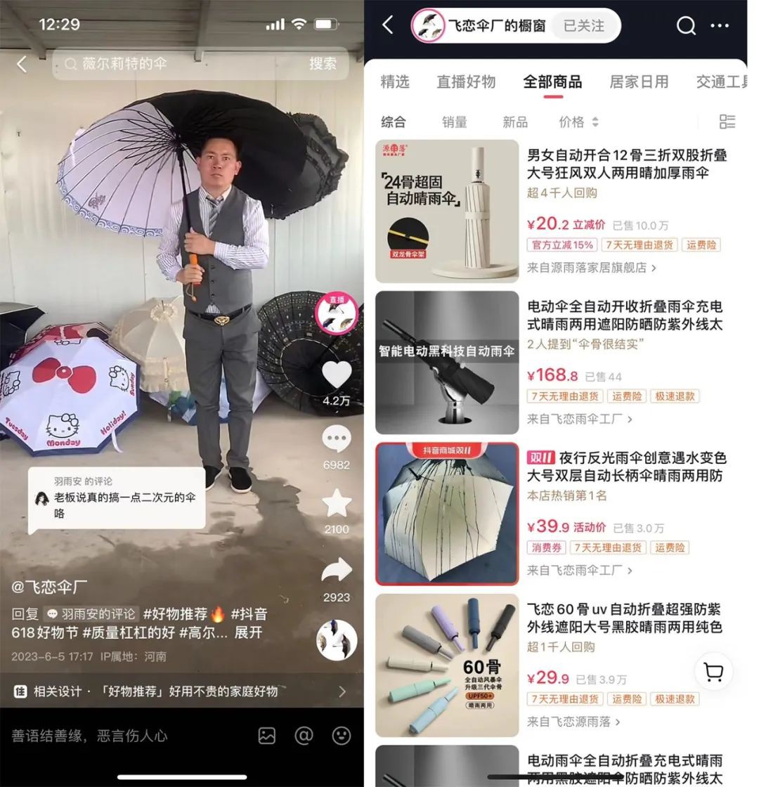 本文來(lái)源:市值榜(ID:shizhibang2021)作者|何玥陽(yáng) 編輯|趙元 ■ 為什么中小商家又受歡迎了? ■ 扎根抖音電商的邏輯是什么? ■ 如何借勢(shì)才能做好生意? 每年雙11,都是觀察消費(fèi)市場(chǎng)的一個(gè)絕佳窗口期。 今年雙11,我們?cè)诙兑綦娚逃^察到一個(gè)現(xiàn)象,中小商家出現(xiàn)了爆發(fā)性增長(zhǎng),走到了更加顯眼的位置。 不僅如此,越來(lái)越多的中小商家正在將抖音電商作為經(jīng)營(yíng)生意的陣地。今年9月,抖音電商披露的數(shù)據(jù)顯示,過(guò)去一年,有515萬(wàn)新作者入駐平臺(tái)開啟電商事業(yè),有884萬(wàn)作者在平臺(tái)獲得電商收入。中小商家正是電商作者的重要組成。 中小商家正在成為創(chuàng)造消費(fèi)市場(chǎng)新增量的堅(jiān)實(shí)力量。 同時(shí),中小商家也是脆弱的。它們的試錯(cuò)空間小、試錯(cuò)成本高,所以生命周期普遍比較短。正因如此,中小商家在生意上布局的每一步,都必須選擇確定性更高的那條路。 什么是確定性更高的路?為什么中小商家選擇在抖音電商深扎?現(xiàn)在再布局抖音電商還有機(jī)會(huì)嗎?本文將探討這些問(wèn)題。 01 不要在鹽堿地里種莊稼 做好生意,離不開優(yōu)化基本的三要素,人、貨、場(chǎng)。貨是做什么樣的生意,人是做誰(shuí)的生意,連接著人和貨的場(chǎng),是促成交易的關(guān)鍵所在。 就像在線下做生意,選址很重要,因?yàn)檫x址關(guān)系著人流量,而人流量是做好生意的基礎(chǔ)。做好電商,同樣要在流量大的地方找到用戶,才能進(jìn)行下一步。 中小商家里,有提供工業(yè)化程度比較高、更標(biāo)準(zhǔn)化商品的商家,也不乏一些服務(wù)群體比較窄、商品品類較少、商品比較垂直小眾的商家。 對(duì)于提供標(biāo)準(zhǔn)化商品的商家,比如一些工廠轉(zhuǎn)型、產(chǎn)業(yè)帶商家,他們一般采用薄利多銷的路,只有做大規(guī)模才能把生意轉(zhuǎn)起來(lái),實(shí)現(xiàn)盈利。 一些小眾創(chuàng)意類商品促成交易,需要將強(qiáng)興趣的人群集中起來(lái),否則,創(chuàng)意就只是創(chuàng)意,會(huì)因?yàn)榈貌坏津?yàn)證或者市場(chǎng)太小而被割舍。 他們的共同點(diǎn)是都需要把規(guī)模做上去,才有賺錢的機(jī)會(huì)。 @飛戀傘廠 就是一個(gè)把小市場(chǎng)做大的典范。 飛戀傘廠的作品集里,帶手電筒的雨傘、六花洛麗塔公主傘、釣魚傘、遇水開花傘、鐳射反光傘……各色各樣的傘應(yīng)有盡有,評(píng)論區(qū)也成了網(wǎng)友的許愿池。飛戀傘廠的老板雷鵬琳說(shuō),不管是多奇葩的傘,只要真的呼聲夠高,大家真喜歡,就都能做出來(lái)。 (@飛戀傘廠的短視頻和櫥窗) 專為釣魚而設(shè)計(jì)的傘賣出了上萬(wàn)把,這在以前是想都不敢想的。 飛戀傘廠的老板雷鵬琳18歲開始在傘廠工作,十年時(shí)間里,他干過(guò)傘廠所有崗位。他更清楚地知道傘廠最大的難題不是生產(chǎn),而是摸不清客戶喜歡不喜歡。所以,大多數(shù)傘廠墨守成規(guī),創(chuàng)新受到很大限制,最后被卷入價(jià)格戰(zhàn)。 機(jī)緣巧合之下,雷鵬琳從抖音短視頻帶火的爆品“小豬佩奇”手環(huán)里看到了難題的解決之道:抖音可以讓商家直面用戶,這是一個(gè)很大的生意機(jī)會(huì)。于是,雷鵬琳在抖音電商開始了新生意。 雷鵬琳借助夸張的演繹,直觀地向用戶展示傘的賣點(diǎn):功能上的速干、結(jié)實(shí)等,外觀上的風(fēng)格,使用場(chǎng)景等等。 匯聚了網(wǎng)友智慧的傘,收獲了大量的點(diǎn)贊與好評(píng),比如過(guò)去同行眼中賣不出去的“鐳射反光傘”一炮而紅,相關(guān)視頻獲贊150多萬(wàn),上架3個(gè)月售出近2萬(wàn)把。現(xiàn)在,飛戀傘廠已成為擁有200多名員工的中型傘廠,每個(gè)月賣出近5萬(wàn)把傘,銷量較以前提升60%。 把小眾品做成爆品的還有來(lái)自內(nèi)蒙古的90后小伙楊國(guó)民。兩年多以前,楊國(guó)民是大城市的程序員,現(xiàn)在他把草原上的發(fā)酵純羊糞有機(jī)肥賣回了城市。 (@小楊廠長(zhǎng)-純羊糞發(fā)酵有機(jī)肥的抖音店鋪和短視頻) 在楊國(guó)民回鄉(xiāng)創(chuàng)業(yè)之前,自家的產(chǎn)品主要銷往南方的花卉苗木基地,生意做得還可以,但始終找不到增量。返鄉(xiāng)后,看到抖音電商在扶持三農(nóng),楊國(guó)民就組建了10個(gè)人的團(tuán)隊(duì)入局,開始短視頻拍攝和直播帶貨。 看到了陽(yáng)臺(tái)經(jīng)濟(jì)的趨勢(shì),楊國(guó)民專門定制了小規(guī)格的產(chǎn)品,以滿足個(gè)人購(gòu)買的需求!盁o(wú)異味、不傷根、不燒苗”的發(fā)酵純羊糞有機(jī)肥通過(guò)抖音電商被更多的消費(fèi)者認(rèn)可,小包裝羊糞肥吸引了27萬(wàn)人下單,一個(gè)月能賣出300噸。 消費(fèi)側(cè)的需求也轉(zhuǎn)變成了牧民的收入。在當(dāng)?shù),羊糞一般是牧民自用或者直接廢棄,而現(xiàn)在,四五十戶牧民固定供應(yīng)給楊國(guó)民做有機(jī)肥的原料,很多牧民都是自己開車把羊糞送到楊國(guó)民家的工廠。 這兩個(gè)例子還給了商家新的啟發(fā):供給側(cè)升級(jí)是走出價(jià)格內(nèi)卷的有效途徑。 當(dāng)然,這不意味著把消費(fèi)者當(dāng)韭菜,而是借助高效匹配的方式,集中消費(fèi)者的需求,通過(guò)規(guī);a(chǎn)、縮短中間環(huán)節(jié)、靈活決