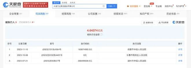本文來源 / 新行情 作者 / 張小磊 萬達集團又被強制執(zhí)行。 近日,天眼查顯示,大連萬達集團股份有限公司及旗下仁壽萬達廣場置業(yè)有限公司新增一則被執(zhí)行人信息,執(zhí)行標的1.63億余元,執(zhí)行法院為成都市中級人民法院。 公開資料顯示,大連萬達集團股份有限公司,創(chuàng)立于1988年,已發(fā)展成為以現(xiàn)代服務業(yè)為主的大型企業(yè)集團,旗下包括商管集團、文化集團、投資集團,其中商業(yè)中心、影視、體育、兒童產(chǎn)業(yè)等處于世界行業(yè)領(lǐng)先地位。 其法定代表人、董事長為王健林,注冊資本10億人民幣,由大連合興投資有限公司、王健林共同持股。 今年7月,中國執(zhí)行信息公開網(wǎng)顯示,大連萬達集團股份有限公司、大連萬達商業(yè)管理集團股份有限公司、湖州萬達投資有限公司新增被執(zhí)行人信息,執(zhí)行標的3億余元,執(zhí)行法院為湖州市中級人民法院。 截至目前,該公司存在3條被執(zhí)行人信息,累計被執(zhí)行4.64億余元。 值得一提的是,4月20日,萬達地產(chǎn)集團有限公司被上海市第二中級人民法院兩次列為失信被執(zhí)行人,被強制執(zhí)行超10億元。 受此影響,萬達地產(chǎn)原法人張霖也被關(guān)聯(lián)限制高消費。張霖2000年3月加入萬達集團,曾任萬達文化集團總裁、萬達集團副總裁、萬達集團財務總監(jiān)等多個職務。 6月5日,萬達集團新增兩則股權(quán)凍結(jié)信息,股權(quán)被執(zhí)行標的企業(yè)均為大連萬達商業(yè)管理集團股份有限公司(大連萬達商管),被凍結(jié)股權(quán)數(shù)額合計約19.79億元,凍結(jié)期限自2023年6月5日至2026年6月4日。 旗下公司屢次被執(zhí)行,王健林選擇賣資產(chǎn)解決困境。 7月11日,萬達電影公告稱,控股股東北京萬達投資擬通過協(xié)議轉(zhuǎn)讓方式向陸麗麗女士轉(zhuǎn)讓其持有的公司股份1.8億股股份,(占公司總股本的8.26%),轉(zhuǎn)讓價格為12.07元/股,交易總代價約21.72億元。 根據(jù)公告披露,該交易價格由股份轉(zhuǎn)讓協(xié)議簽署前一交易日標的股票收盤價的90%折讓。 7月17日,萬達電影再度公告稱,控股股東萬達投資擬向一致行動人莘縣融智轉(zhuǎn)讓1.77億股(占公司總股本的8.14%),轉(zhuǎn)讓價格為13.17元/股,轉(zhuǎn)讓價格為23.36億元,完成過戶登記后,萬達投資持有的萬達電影股權(quán)將降至20%。 |