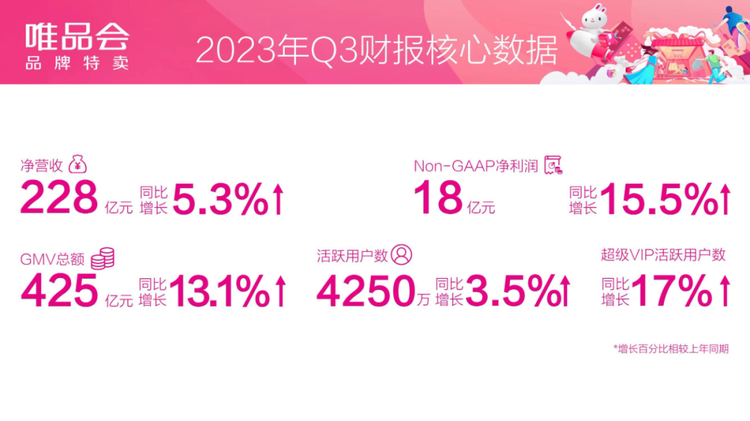 中國(guó)領(lǐng)先的在線(xiàn)品牌折扣零售商唯品會(huì)發(fā)布2023年第三季度財(cái)報(bào)。 財(cái)報(bào)顯示,第三季度,唯品會(huì)實(shí)現(xiàn)凈營(yíng)收228億元,同比增長(zhǎng)5.3%;Non-GAAP凈利潤(rùn)18億元,同比增長(zhǎng)15.5%。同時(shí),三季度GMV為425億元,同比增長(zhǎng)13.1%;活躍用戶(hù)數(shù)4250萬(wàn),同比增長(zhǎng)3.5%;訂單數(shù)1.799億,同比增長(zhǎng)6.9%。 唯品會(huì)董事長(zhǎng)兼首席執(zhí)行官沈亞表示:“三季度,我們繼續(xù)強(qiáng)化‘買(mǎi)衣服先來(lái)唯品會(huì)’的用戶(hù)心智,滿(mǎn)足用戶(hù)對(duì)高性?xún)r(jià)比消費(fèi)的需要。同時(shí),我們采取了一系列舉措增強(qiáng)用戶(hù)價(jià)值感知,將用戶(hù)體驗(yàn)推向新高度。著眼未來(lái),我們有信心實(shí)現(xiàn)穩(wěn)健、可持續(xù)的增長(zhǎng)! 探索跨品類(lèi)消費(fèi)場(chǎng)景,豐富差異化商品供給 今年三季度,唯品會(huì)推出唯品奧萊、唯品夜市、趨勢(shì)情報(bào)局等全新欄目,為用戶(hù)打造優(yōu)質(zhì)內(nèi)容生態(tài),增加平臺(tái)可逛性。同時(shí),唯品會(huì)持續(xù)探索跨品類(lèi)消費(fèi)場(chǎng)景,以超級(jí)品類(lèi)日為例,今年8月該欄目攜手超70家知名品牌圍繞“開(kāi)學(xué)季”開(kāi)展專(zhuān)題運(yùn)營(yíng),24小時(shí)銷(xiāo)售額突破億元。 唯品會(huì)充分發(fā)揮全球買(mǎi)手體系的資源優(yōu)勢(shì),持續(xù)提升商品品牌的豐富度。今年以來(lái),平臺(tái)已累計(jì)引入數(shù)百個(gè)時(shí)尚潮流和高階品牌。隨著更多優(yōu)質(zhì)品牌入駐,三季度,平臺(tái)穿戴類(lèi)GMV繼續(xù)保持雙位數(shù)增長(zhǎng)。 此外,通過(guò)強(qiáng)化品牌合作,平臺(tái)上的定制商品數(shù)量逐月增長(zhǎng)。近期,平臺(tái)進(jìn)一步增加保暖服飾的定制商品供給,為用戶(hù)提供更多差異化的好貨好價(jià)商品。 全面提升用戶(hù)體驗(yàn),與中國(guó)中檢達(dá)成戰(zhàn)略合作 今年以來(lái),唯品會(huì)圍繞用戶(hù)體驗(yàn)提升采取一系列舉措,包括持續(xù)優(yōu)化售后服務(wù)產(chǎn)品,營(yíng)造放心無(wú)憂(yōu)消費(fèi)環(huán)境,強(qiáng)化用戶(hù)意見(jiàn)反饋渠道建設(shè)等。近期,唯品會(huì)還與中國(guó)檢驗(yàn)認(rèn)證集團(tuán)達(dá)成戰(zhàn)略合作,全面升級(jí)質(zhì)檢、溯源、質(zhì)量認(rèn)證體系。 同時(shí),三季度,唯品會(huì)為超級(jí)VIP會(huì)員(SVIP)提供騰訊視頻、嗶哩嗶哩大會(huì)員“買(mǎi)1得N聯(lián)合卡”等權(quán)益,并圍繞亞運(yùn)會(huì)賽事熱點(diǎn)開(kāi)展超V品牌日,強(qiáng)化會(huì)員價(jià)值感知,進(jìn)一步增強(qiáng)會(huì)員深度信任感,推動(dòng)平臺(tái)高價(jià)值用戶(hù)規(guī)模不斷擴(kuò)大。 截至三季度末,唯品會(huì)SVIP活躍用戶(hù)數(shù)同比增長(zhǎng)17%,已連續(xù)多個(gè)季度保持增長(zhǎng);同時(shí),SVIP活躍用戶(hù)貢獻(xiàn)線(xiàn)上消費(fèi)約45%,人均消費(fèi)額持續(xù)增長(zhǎng)。 推進(jìn)鄉(xiāng)村振興建設(shè),開(kāi)展生物多樣性保護(hù) 唯品會(huì)深耕女性賦能、鄉(xiāng)村振興、互聯(lián)網(wǎng)公益創(chuàng)新等板塊,持續(xù)開(kāi)展唯愛(ài)媽媽、塱頭鄉(xiāng)村振興項(xiàng)目、唯愛(ài)心公益計(jì)劃等系列旗艦公益項(xiàng)目。截至2023年第三季度,唯品會(huì)公益累計(jì)投入金額達(dá)6.62億元。 同時(shí),唯品會(huì)積極探索企業(yè)經(jīng)營(yíng)及價(jià)值鏈全鏈條的綠色減碳路徑。以清潔能源應(yīng)用為例,今年三季度,唯品會(huì)光伏發(fā)電總量1871萬(wàn)千瓦時(shí),折合減少碳排放量約10671噸。在生物多樣性保護(hù)方面,唯品會(huì)制定《唯品會(huì)生物多樣性保護(hù)承諾》,明確生物多樣性保護(hù)策略,力求通過(guò)實(shí)際行動(dòng)對(duì)生物多樣性產(chǎn)生積極影響。 憑借在ESG領(lǐng)域的優(yōu)異表現(xiàn),近期國(guó)際權(quán)威指數(shù)機(jī)構(gòu)MSCI明晟將唯品會(huì)ESG評(píng)級(jí)從“A”上調(diào)至“AA”級(jí),為行業(yè)領(lǐng)先水平。 |