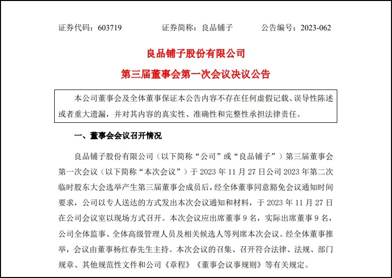 11月28日消息,良品鋪?zhàn)尤涨罢匍_2023年第二次臨時(shí)股東大會(huì),完成公司第三屆董事會(huì)、監(jiān)事會(huì)換屆選舉。楊銀芬當(dāng)選良品鋪?zhàn)有氯味麻L(zhǎng),并再次出任總經(jīng)理職務(wù)。原董事長(zhǎng)兼總經(jīng)理?xiàng)罴t春在本次換屆后,不再擔(dān)任董事長(zhǎng)、總經(jīng)理職務(wù);原董事兼副總經(jīng)理張國(guó)強(qiáng)在本次換屆后,不再擔(dān)任副總經(jīng)理職務(wù),二者仍任公司董事。 資料顯示,楊紅春、楊銀芬、張國(guó)強(qiáng)均為良品鋪?zhàn)觿?chuàng)始人,多年來共同帶領(lǐng)良品鋪?zhàn)涌焖侔l(fā)展并成為頭部休閑零食品牌。接近良品鋪?zhàn)酉嚓P(guān)人士表示,楊銀芬作為公司創(chuàng)始人之一,曾任良品鋪?zhàn)涌偨?jīng)理兼董事、副董事長(zhǎng)職務(wù),帶領(lǐng)良品鋪?zhàn)訉?shí)現(xiàn)線上渠道布局、上交所主板上市等多項(xiàng)里程碑式突破,其對(duì)食品、零售行業(yè)有深刻的理解,是休閑零食行業(yè)資深專家,同時(shí)具備多年管理公司經(jīng)營(yíng)工作的經(jīng)驗(yàn),是深得公司實(shí)控人團(tuán)隊(duì)信任、董事會(huì)充分支持的企業(yè)當(dāng)家人。 良品鋪?zhàn)颖硎,公司?chuàng)始人團(tuán)隊(duì)將一如既往地支持公司發(fā)展。本次換屆為公司逐步打造專業(yè)化、職業(yè)化的職業(yè)經(jīng)理人隊(duì)伍和進(jìn)一步完善現(xiàn)代企業(yè)制度奠定了堅(jiān)實(shí)基礎(chǔ),也將為公司應(yīng)對(duì)激烈的市場(chǎng)競(jìng)爭(zhēng),推進(jìn)戰(zhàn)略調(diào)整,提升經(jīng)營(yíng)業(yè)績(jī),注入全新動(dòng)力。 作為新任董事長(zhǎng),楊銀芬表示,下一步將帶領(lǐng)新一屆董事會(huì)、經(jīng)營(yíng)層,圍繞“強(qiáng)化業(yè)務(wù)創(chuàng)新,全面提升經(jīng)營(yíng)效率”創(chuàng)新改革,堅(jiān)定走高品質(zhì)零食發(fā)展路線,繼續(xù)引領(lǐng)行業(yè)領(lǐng)導(dǎo)地位。 |
