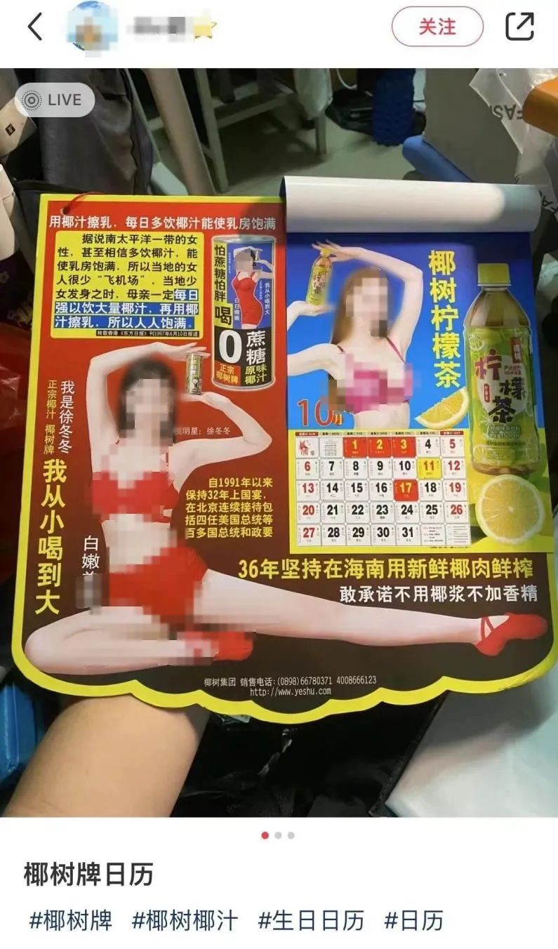 都說新年有新氣象,營銷界的“泥石流”椰樹,新年也“擦了新邊兒”。 這不,最近椰樹又開始整活了,推出了2024新年掛歷,仍是熟悉的味道、熟悉的畫風(fēng),讓網(wǎng)友大呼不敢掛! 01 畫風(fēng)依舊很大膽! 封面模特依舊是我們熟悉的大嫂徐冬冬,其穿著一身喜慶的紅衣內(nèi)衣套裝,手舉椰樹椰汁,擺著經(jīng)典的舉過頭頂姿勢。 而在右側(cè),則是日歷的活動翻頁,每一個(gè)月份都有不同的模特造型對應(yīng),且宣傳了集團(tuán)旗下不同產(chǎn)品,例礦泉水、檸檬茶、菊花茶、椰子水、豆奶等。 值得一提的是,日歷12月份所對應(yīng)的模特除了徐冬冬,還有今年在椰樹以男主播身份成功出道并以高顏值和好身材吸粉不斷的歡歡。 再看旁邊配的文案——男人有男人味,女人有女人味。嗯,是熟悉的椰樹味沒錯(cuò)了! 除了畫風(fēng)依舊大膽之外,椰樹日歷的文案也是依舊炸裂。 對于椰樹的新年掛歷,網(wǎng)友也表現(xiàn)出了極大的熱情: 從網(wǎng)友的反應(yīng)中可以看出,椰樹新年掛歷的人氣還是很高的,且基本很少有人覺得有所不雅,特別抵觸的。 究其原因,我想早已經(jīng)被椰樹老板摸透了——大俗即大雅,堂堂正正做自己還不夠光明磊落嗎? 02 椰樹,活成了頂流的樣子 從嘲諷、批判到追捧、愛上,從“辣眼睛”到“我愛看”......可以說,十幾年來,椰樹反而把自己“擦”成了頂流。 從2006年開始,椰樹椰汁開始投放以“白白嫩嫩、曲線動人、喝椰樹牌椰汁”為主題的廣告,廣告中的美女,曲線一版比一版凹凸,椰汁包裝的配色也一版比一版“辣眼睛”。在思想還沒那么開放的年代,椰樹的廣告風(fēng)格可以說是極為膽大的了。 2009年前后,因在?谑泄卉嚿嫌∮胁谎艔V告,椰樹集團(tuán)被當(dāng)?shù)毓ど滩块T認(rèn)定違規(guī),廣告被責(zé)令立即停止,交了1000元罰款。 而此后的椰樹,如脫韁的野馬,一“擦”不可收拾。 2016年,椰樹對大胸美女的熱愛登峰造極,推出“世界獨(dú)創(chuàng)”、模仿女性曲線的礦泉水“胸模瓶”……面對指責(zé),集團(tuán)非常硬氣地表示,“是產(chǎn)品與藝術(shù)相結(jié)合的創(chuàng)新”。 也正因此,市場對于椰樹的爭議就沒斷過。但這并不影響椰樹的熱度,每次都能登上熱搜的頭條。 尤其是在剛剛過去的2023年,椰樹又以另一種方式出圈。 比如,有人罵它擦邊,椰樹就把女模特請去直播間,跳舞的跳舞,做操的做操,模特穿著符合直播規(guī)范,也依舊可見動人曲線。 美女直播多次被舉報(bào)后,椰樹又把猛男直播也搞了起來。有人想看體育生,下一次開播就直接轉(zhuǎn)場體育館搞籃球賽;有人要看猛男喝椰汁,人家就暈倒在地上讓美女姐姐喂。 不止如此,網(wǎng)上噴子多沒關(guān)系,椰樹還把直播間搬到線下了! 椰樹直播間幾位當(dāng)家主播還登上天貓雙11晚會,臺上男模女模們一段勁歌熱舞,再一次刷屏全網(wǎng)。 作為一個(gè)知名度極高的老國貨,椰樹可謂是我行我素,將“土欲風(fēng)”進(jìn)行到底,椰樹一開始招致的罵聲很大,但現(xiàn)在的椰樹已經(jīng)贏麻了,活成了自帶熱搜體質(zhì)的頂流。 本文轉(zhuǎn)載來自:「納食」,不代表零售網(wǎng)觀點(diǎn),版權(quán)歸「納食」所有,如若轉(zhuǎn)載請聯(lián)系原作者。如涉及版權(quán)問題請聯(lián)系零售網(wǎng),我們將馬上處理。 |