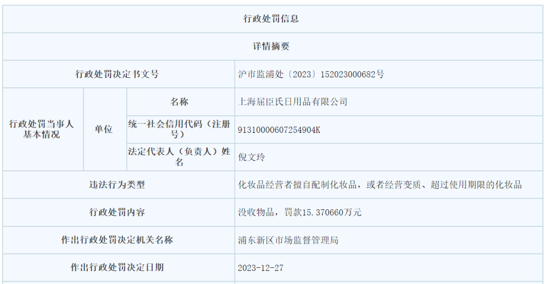 近日,據(jù)南方都市報(bào)報(bào)道,上海屈臣氏門店因營(yíng)銷活動(dòng)中擅自分裝化妝品而遭到行政處罰。 處罰事由顯示,自2021年1月28日起,當(dāng)事人在全市各門店推行“任試瓶·會(huì)員免費(fèi)領(lǐng)”活動(dòng),會(huì)員到店選擇心儀的洗護(hù)、沐浴類化妝品,現(xiàn)場(chǎng)選擇并自行分裝至試用裝塑料瓶后免費(fèi)帶走,上述試用裝無任何中文標(biāo)簽。行政處罰書顯示,上海市屈臣氏日用品有限公司因擅自配制化妝品,或者經(jīng)營(yíng)變質(zhì)、超過使用期限的化妝品被處以罰款15.370660萬元,并沒收物品。 據(jù)屈臣氏母公司長(zhǎng)江和記實(shí)業(yè)有限公司發(fā)布的2023年上半年業(yè)績(jī)報(bào)告顯示,屈臣氏中國(guó)上半年?duì)I收總額88.84億港元,同比下降8%,是近三年最低水平。此外,財(cái)報(bào)數(shù)據(jù)顯示,屈臣氏全球店鋪數(shù)從2021年的16398家減少至2022年的16142家。 |