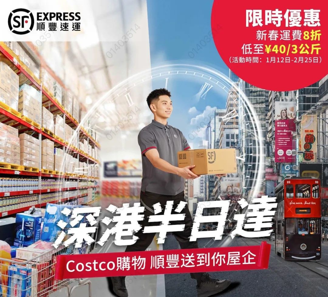 1月12日,順豐速運派流動服務車現(xiàn)場進駐開市客深圳首店,并公布推出“深港半日達“八折優(yōu)惠,首3公斤收費40元,續(xù)重每0.5公斤收費4元(約4.5港元),優(yōu)惠期2月25日。(香港01) |