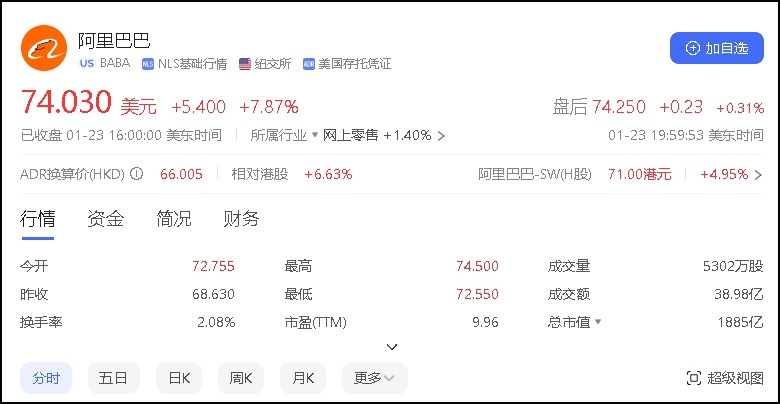 1月23日消息,阿里巴巴集團創(chuàng)始人馬云、蔡崇信大幅增持阿里股票。蔡崇信家族基金增持了價值1.5億美元的阿里股票,馬云同期也大手筆增持。受此消息影響,阿里巴巴美股盤前漲超7%,開盤后截至記者發(fā)稿,漲超7%。阿里巴巴港股1月23日收盤漲幅3.36%。 分析人士表示,這體現(xiàn)了馬云、蔡崇信對阿里巴巴前景非?春,對公司未來發(fā)展、對管理團隊及戰(zhàn)略方向充滿信心。此外,這也有力回應(yīng)了前段時間馬云拋售阿里巴巴的傳言,馬云不僅“一股未賣”,還在不斷增持。 此前,阿里巴巴1月2日在港交所發(fā)布公告稱,截至2023年12月31日的12個月期間,以95億美元的總價回購了總計8.979億股普通股(相當(dāng)于1.122億股美國存托股),其中包括于截至2023年12月31日止的季度以29億美元回購總計的2.927億股普通股(相當(dāng)于3,660萬股美國存托股)。這些回購是根據(jù)股份回購計劃在美國市場和香港市場進行的。 公告顯示,截至2023年12月31日止,流通的普通股為200億股(相當(dāng)于25億股美國存托股)。相比于2022年12月31日的207億股普通股(相當(dāng)于26億股美國存托股),過去12個月,在已經(jīng)計入在股權(quán)激勵計劃下發(fā)行的股份后,流通股通過股份回購計劃凈減少了3.3%。 此外,截至2023年12月31日止,在董事會授權(quán)的股份回購計劃下仍余117億美元回購額度,有效期至2025年3月。未來將在每個季度結(jié)束后立即提供股份回購的最新信息。 |