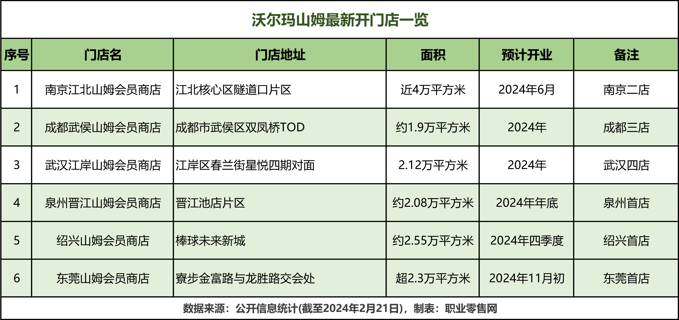 《職業(yè)零售網(wǎng)》獲悉,2月20日,沃爾瑪招聘官方公眾號(hào)發(fā)布了一則2月份山姆新店招聘的信息。 招聘信息顯示,山姆會(huì)員店計(jì)劃在南京、成都、武漢、泉州、東莞、紹興等城市開設(shè)6家新店,并正式開啟人才招募。 此次招聘涵蓋多個(gè)職位,包括前臺(tái)/后區(qū)/鮮食/電商/副總經(jīng)理、生鮮主廚/主廚助理、人事行政經(jīng)理、HR專員/行政專員、鮮食/樓面/收貨等主管、員工/員工指導(dǎo)、各類技工、社會(huì)兼職以及在校實(shí)習(xí)生等職位。 據(jù)了解,這6家門店目前正處于建設(shè)階段,并預(yù)計(jì)將在2024年陸續(xù)開業(yè)。據(jù)公開報(bào)道,南京江北店有望在今年6月率先亮相,成為山姆今年的首家新門店。而原本計(jì)劃于2025年投入運(yùn)營(yíng)的東莞店,由于建設(shè)進(jìn)度加快,已于2023年底提前封頂,預(yù)計(jì)將在2024年第四季度正式開業(yè)。 南京江北山姆會(huì)員商店位于江北核心區(qū)隧道口片區(qū),是山姆在南京的第二家門店,其中地上結(jié)構(gòu)6層,商業(yè)面積約4萬平方米。目前,項(xiàng)目在進(jìn)行外立面施工,部分玻璃幕墻已安裝到位,消息稱預(yù)計(jì)在2024年6月開業(yè)。 成都武侯山姆會(huì)員商店位于雙鳳橋TOD,是山姆在成都的第三家門店。據(jù)公開資料顯示,該店約1.9萬方的體量,將被打造成“空中花園商店”,涵蓋3400平方米的空中花園、累計(jì)500米長(zhǎng)的空中綠廊等,預(yù)計(jì)2024年開業(yè)。目前,山姆在成都已有兩家門店,分別是華僑城店和天府新區(qū)店。 武漢江岸山姆會(huì)員商店位于江岸區(qū)春蘭街星悅四期對(duì)面,是山姆在武漢的第四家門店,已于2023年11月封頂,預(yù)計(jì)2024年開業(yè)。據(jù)介紹,該門店總面積約為2.12萬平方米,相較于以往山姆店,該店在新增業(yè)態(tài)、會(huì)籍分層、強(qiáng)化體驗(yàn)感與內(nèi)場(chǎng)布局都有很多變化。截至目前,武漢在運(yùn)營(yíng)和在建山姆會(huì)員店已經(jīng)有4家,分別是2014年開業(yè)的山姆會(huì)員店(硚口店)、2021年開業(yè)的山姆會(huì)員店(光谷店)、2023年開業(yè)的山姆會(huì)員店(漢陽店),以及正在建設(shè)中的山姆會(huì)員店(后湖店),至此武漢成為華中地區(qū)擁有山姆數(shù)量最多的城市。 泉州晉江山姆會(huì)員商店位于晉江池店片區(qū),是山姆在泉州的第一家門店,已于2月初封頂,預(yù)計(jì)2024年底開業(yè)。據(jù)了解,泉州晉江山姆會(huì)員商店項(xiàng)目分為兩期,其中一期為山姆會(huì)員商店,占地面積31.274畝(2.08萬平方米),總建筑面積約7.4萬平方米;二期擬投建周邊商業(yè)配套項(xiàng)目,占地面積19.657畝,總建筑面積約6.4萬平方米。目前,福建一共有三家山姆會(huì)員店,兩家位于福州,一家位于廈門。 紹興山姆會(huì)員商店位于棒球未來新城,是山姆在紹興第一家門店,據(jù)說是長(zhǎng)三角最大的山姆會(huì)員店。該項(xiàng)目總投資約5.2億元,門店總用地面積約2.55萬平方米,總建筑面積約8萬平方米,其中地上建筑面積3.83萬平方米,地下建筑面積4.2萬平方米。據(jù)悉,該項(xiàng)目在春節(jié)前已完成二層樓面部分的施工,且春節(jié)期間不停工,總體建設(shè)進(jìn)度達(dá)55%,預(yù)計(jì)2024年第四季度亮相。 東莞山姆會(huì)員商店位于寮步金富路與龍勝路交會(huì)處,是山姆在東莞的第一家門店。項(xiàng)目總投資約4.86億元,占地面積超2.3萬平方米,共三層,其中一二層用于購(gòu)物,三層、頂樓及地下室用于停車,共規(guī)劃有1097個(gè)停車位。目前山姆會(huì)員店整體項(xiàng)目施工進(jìn)度已經(jīng)完成60%左右,預(yù)計(jì)在8月底全面完工并交付給山姆會(huì)員店運(yùn)營(yíng)方,“預(yù)計(jì)在11月初山姆會(huì)員店將正式開業(yè)”。 圖來源:沃爾瑪招聘。 資料顯示,山姆會(huì)員店于1996年進(jìn)入中國(guó),并在深圳開設(shè)第一家門店,截至2023年底,在中國(guó)已經(jīng)擁有47家門店。沃爾瑪中國(guó)官方表示,山姆預(yù)計(jì)在未來每年將開設(shè)6至7家新店,標(biāo)志著其在中國(guó)市場(chǎng)的快速擴(kuò)張與深入發(fā)展。 根據(jù)我們不完全統(tǒng)計(jì),除了之前提及的6家新店,深圳寶安店、嘉興經(jīng)開店和安徽合肥店等也計(jì)劃在2024年開業(yè)。未來幾年,上海浦東金谷店、北京昌平店、浙江溫州店、廣州嶺南V谷店、西安經(jīng)開店和雁塔店等也將陸續(xù)開業(yè)。佛山首店和北京第六店則分別計(jì)劃于2026年和2027年開業(yè)。 在沃爾瑪2024財(cái)年第四季度的業(yè)績(jī)報(bào)告中,中國(guó)市場(chǎng)表現(xiàn)出色,凈銷售同比增長(zhǎng)11.3%至40億美元(約合人民幣287.78億元)。可比銷售額也實(shí)現(xiàn)了6.6%的增長(zhǎng),而電商凈銷售同比上升了11%,顯示出山姆業(yè)態(tài)及電商業(yè)務(wù)的強(qiáng)勁勢(shì)頭。 沃爾瑪全球CEO董明倫在財(cái)報(bào)電話會(huì)議上對(duì)山姆在中國(guó)的發(fā)展態(tài)勢(shì)給予了高度評(píng)價(jià)。展望未來一年,沃爾瑪計(jì)劃在全球范圍內(nèi)開設(shè)約230家門店,其中,中國(guó)市場(chǎng)的山姆會(huì)員店將是其擴(kuò)張的重點(diǎn)。 |