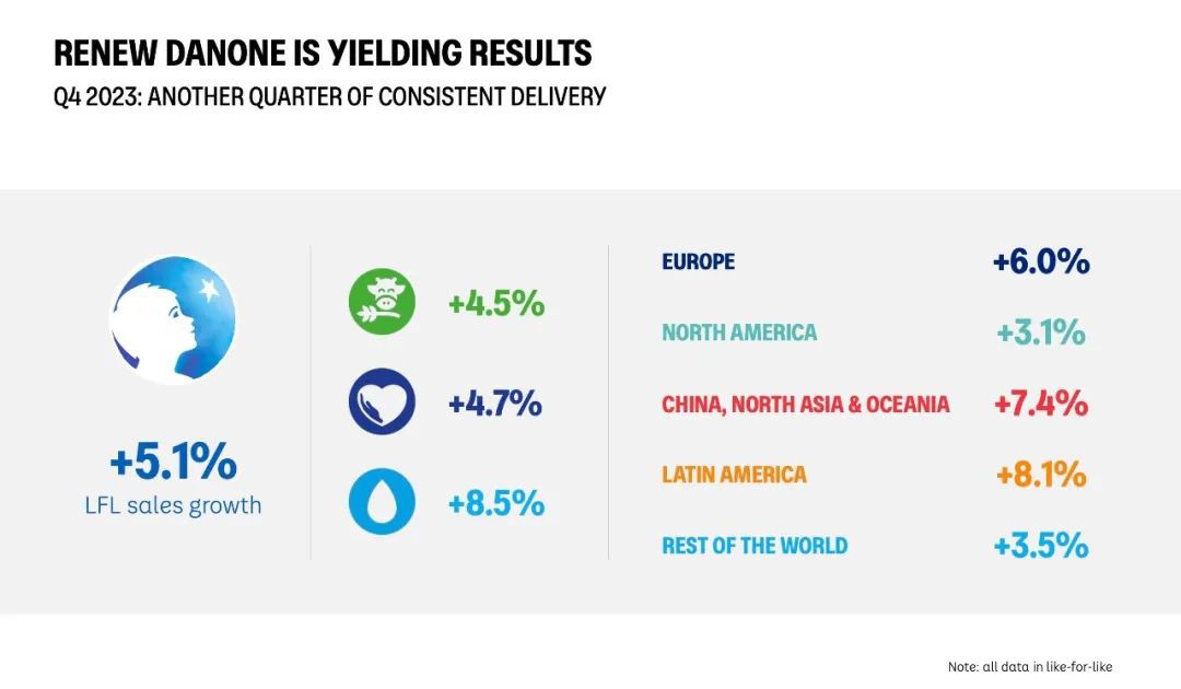 2月22日,法國食品巨頭達能公布了2023年財報顯示,公司全年實現(xiàn)銷售收入276.19億歐元,同比增長7.0%,其中價格因素貢獻了7.4%的增長,銷量與組合微跌0.4%;實現(xiàn)經(jīng)常性經(jīng)營利潤35億歐元,經(jīng)常性經(jīng)營利潤率達到12.6%,同比增長40個基點。其中,第四季度公司銷售收入為67億歐元,同比增長5.1%。 記者了解到,達能中國、北亞及大洋洲地區(qū)全年實現(xiàn)銷售收入34.96億歐元,同比增長10.1%。第四季度銷售收入8.22億歐元,同比增長7.4%。其中,銷量與組合貢獻了4.8%的增長,價格因素則帶來了2.6%的增長。在中國市場,第四季度不僅嬰幼兒營養(yǎng)品和醫(yī)學(xué)營養(yǎng)品均保持了增長勢頭,脈動更是實現(xiàn)了雙位數(shù)的增長,進一步鞏固其反彈態(tài)勢。 分品類來看,2023年,基礎(chǔ)乳制品和植物基產(chǎn)品業(yè)務(wù)實現(xiàn)銷售收入143.22億歐元,同比增長6.6%;專業(yè)特殊營養(yǎng)業(yè)務(wù)實現(xiàn)銷售收入85.04億歐元,同比增長6.7%;飲用水和飲料業(yè)務(wù)實現(xiàn)銷售收入47.93億歐元,同比增長9.1%。 達能首席執(zhí)行官盛睿安表示,“2023年, ‘振新達能’戰(zhàn)略取得了持續(xù)進展。我們以科研為中心,同時進一步提升了可持續(xù)發(fā)展與業(yè)績表現(xiàn)之間的黏性。產(chǎn)品組合調(diào)整也取得了長足的進步。在過去的一年里,我們追加了品牌、創(chuàng)新和能力建設(shè)方面的投資,穩(wěn)步提升了增長的質(zhì)量,為所有利益相關(guān)方創(chuàng)造價值! 盛睿安還表示,基于2023年的良好態(tài)勢,我們對“振新達能”戰(zhàn)略充滿信心并開啟新的一年。我們將繼續(xù)落實2022年3月制定的中期目標,專注于穩(wěn)健的執(zhí)行和業(yè)績表現(xiàn),并將不斷提升公司的韌性,以相應(yīng)的技術(shù)、科研和工具支持未來的發(fā)展。 達能2024年的業(yè)績目標與中期目標保持一致,預(yù)計全年銷售收入同比增長3%至5%,經(jīng)常性經(jīng)營利潤率適度改善。 |