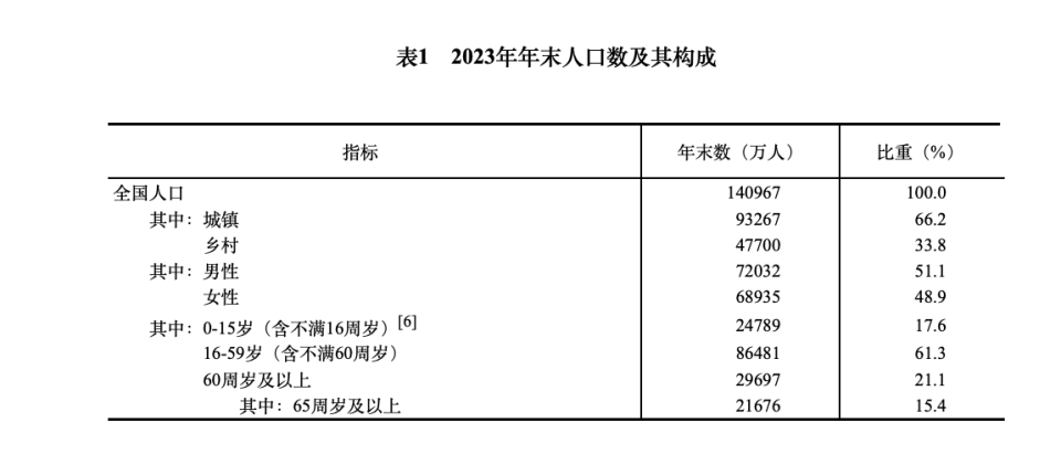 國(guó)家統(tǒng)計(jì)局網(wǎng)站發(fā)布《中華人民共和國(guó)2023年國(guó)民經(jīng)濟(jì)和社會(huì)發(fā)展統(tǒng)計(jì)公報(bào)》,初步核算,全年國(guó)內(nèi)生產(chǎn)總值1260582億元,比上年增長(zhǎng)5.2%。其中,第一產(chǎn)業(yè)增加值89755億元,比上年增長(zhǎng)4.1%;第二產(chǎn)業(yè)增加值482589億元,增長(zhǎng)4.7%;第三產(chǎn)業(yè)增加值688238億元,增長(zhǎng)5.8%。第一產(chǎn)業(yè)增加值占國(guó)內(nèi)生產(chǎn)總值比重為7.1%,第二產(chǎn)業(yè)增加值比重為38.3%,第三產(chǎn)業(yè)增加值比重為54.6%。最終消費(fèi)支出拉動(dòng)國(guó)內(nèi)生產(chǎn)總值增長(zhǎng)4.3個(gè)百分點(diǎn),資本形成總額拉動(dòng)國(guó)內(nèi)生產(chǎn)總值增長(zhǎng)1.5個(gè)百分點(diǎn),貨物和服務(wù)凈出口向下拉動(dòng)國(guó)內(nèi)生產(chǎn)總值0.6個(gè)百分點(diǎn)。 分季度看,一季度國(guó)內(nèi)生產(chǎn)總值同比增長(zhǎng)4.5%,二季度增長(zhǎng)6.3%,三季度增長(zhǎng)4.9%,四季度增長(zhǎng)5.2%。全年人均國(guó)內(nèi)生產(chǎn)總值89358元,比上年增長(zhǎng)5.4%。國(guó)民總收入1251297億元,比上年增長(zhǎng)5.6%。全員勞動(dòng)生產(chǎn)率為161615元/人,比上年提高5.7%。 年末全國(guó)人口140967萬(wàn)人,比上年末減少208萬(wàn)人,其中城鎮(zhèn)常住人口93267萬(wàn)人。全年出生人口902萬(wàn)人,出生率為6.39‰;死亡人口1110萬(wàn)人,死亡率為7.87‰;自然增長(zhǎng)率為-1.48‰。 年末全國(guó)就業(yè)人員74041萬(wàn)人,其中城鎮(zhèn)就業(yè)人員47032萬(wàn)人,占全國(guó)就業(yè)人員比重為63.5%。全年城鎮(zhèn)新增就業(yè)1244萬(wàn)人,比上年多增38萬(wàn)人。全年全國(guó)城鎮(zhèn)調(diào)查失業(yè)率平均值為5.2%。年末全國(guó)城鎮(zhèn)調(diào)查失業(yè)率為5.1%。全國(guó)農(nóng)民工總量29753萬(wàn)人,比上年增長(zhǎng)0.6%。其中,外出農(nóng)民工17658萬(wàn)人,增長(zhǎng)2.7%;本地農(nóng)民工12095萬(wàn)人,下降2.2%。 全年居民消費(fèi)價(jià)格比上年上漲0.2%。工業(yè)生產(chǎn)者出廠價(jià)格下降3.0%。工業(yè)生產(chǎn)者購(gòu)進(jìn)價(jià)格下降3.6%。農(nóng)產(chǎn)品生產(chǎn)者價(jià)格下降2.3%。12月份,70個(gè)大中城市中,新建商品住宅銷售價(jià)格同比上漲的城市個(gè)數(shù)為20個(gè),持平的為2個(gè),下降的為48個(gè);二手住宅銷售價(jià)格同比上漲的城市個(gè)數(shù)為1個(gè),下降的為69個(gè)。 年末國(guó)家外匯儲(chǔ)備32380億美元,比上年末增加1103億美元。全年人民幣平均匯率為1美元兌7.0467元人民幣,比上年貶值4.5%。 |