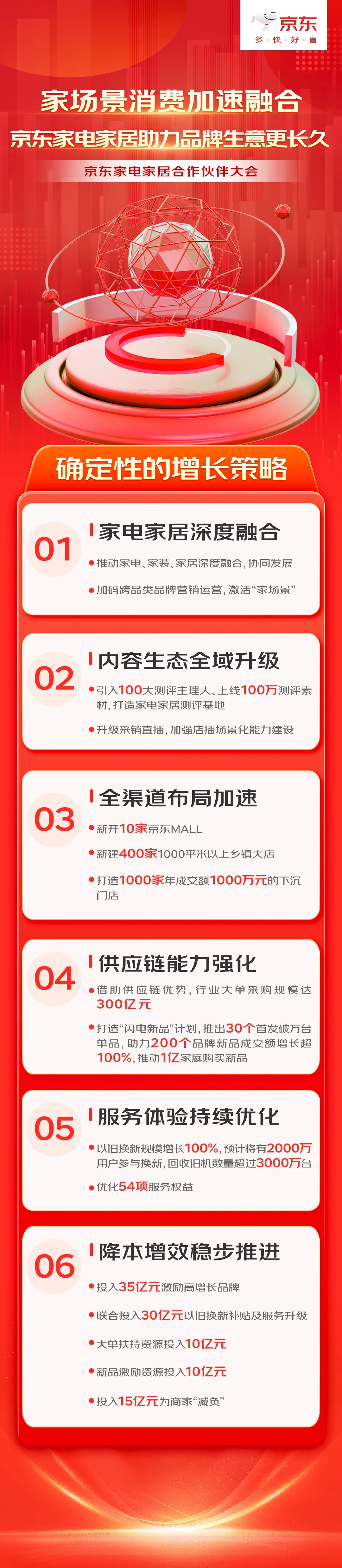 3月25日消息,2024京東家電家居合作伙伴大會(huì)今日在北京召開(kāi)。作為“融合元年”,京東家電家居在2023年實(shí)現(xiàn)了業(yè)務(wù)規(guī)模的高增長(zhǎng),近300個(gè)家電家居品牌合作伙伴在京東實(shí)現(xiàn)了超預(yù)期的增長(zhǎng)。 2024年,京東將通過(guò)家電家居深度融合、內(nèi)容生態(tài)全域升級(jí)、全渠道布局加速、供應(yīng)鏈能力強(qiáng)化、服務(wù)體驗(yàn)持續(xù)優(yōu)化、降本增效穩(wěn)步推進(jìn)等六大策略,特別是在高增激勵(lì)、以舊換新服務(wù)、新品推廣等方面,持續(xù)加大投入,助力合作伙伴獲得確定性增長(zhǎng)。 |