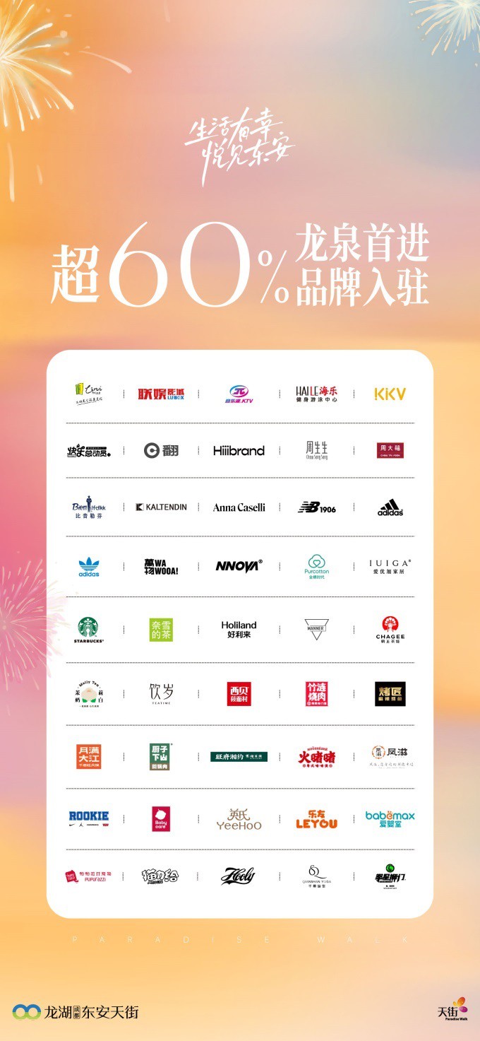 近日消息,龍湖成都東安天街將于4月20日開業(yè),其為龍湖商業(yè)在成都打造的第十座天街系購物中心。 據(jù)悉,東安天街坐落于龍泉驛區(qū)東安新城核心區(qū)位,緊鄰城市主干道桃都大道,距2號線書房站僅300m,項目體量約14萬m2,定位于東安湖畔輕質(zhì)生活中心,目前東安天街招商率已達100%。 品牌規(guī)劃上,項目甄選近300家品牌入駐,引進超60%區(qū)域首進品牌。其中引入鄰你生活超市、聯(lián)娛影城、海樂健身三大主力店品牌,更有周生生、比音勒芬、AnnaCaselli、New Balance1906、Adidas originals、NNOVA等一系列優(yōu)質(zhì)零售品牌入駐。 而作為東安天街優(yōu)勢業(yè)態(tài),星巴克(寵物友好店)、好利來(龍泉首個主題形象店)、Manner Coffee、奈雪的茶、西貝莜面村、吉布魯、月滿大江、廚子下山、竹漣燒肉、火啫啫、旺府湘約、正禾鮮、鳳滋等重磅餐飲加入,使品牌矩陣更具東安味道,除此之外,KKV、C翻樂園、帕帕拉茲寵物、IUIGA(愛優(yōu)加家居)、Hooly House、貓力給等生活方式頭部品牌的加入,也表明東安天街正在將其提出的「輕質(zhì)生活」的概念一步步落到實處。 同時,東安天街的三大特色空間也為重要看點——室內(nèi)的「城市櫥窗」,20m挑高景觀幕墻,呈現(xiàn)300㎡的精致連廊空間;屋頂?shù)摹冈坪馈梗?000㎡綠島懸浮在東安上空,營造自然隨性戶外漫生活;室外的「揮爪公園」與「搖擺山丘」,打造城東首個近千平寵物公園及城東首個戶外平衡車場地,東安天街打造空間與感官的雙重對話,將湖畔輕質(zhì)生活貫穿始終。 |