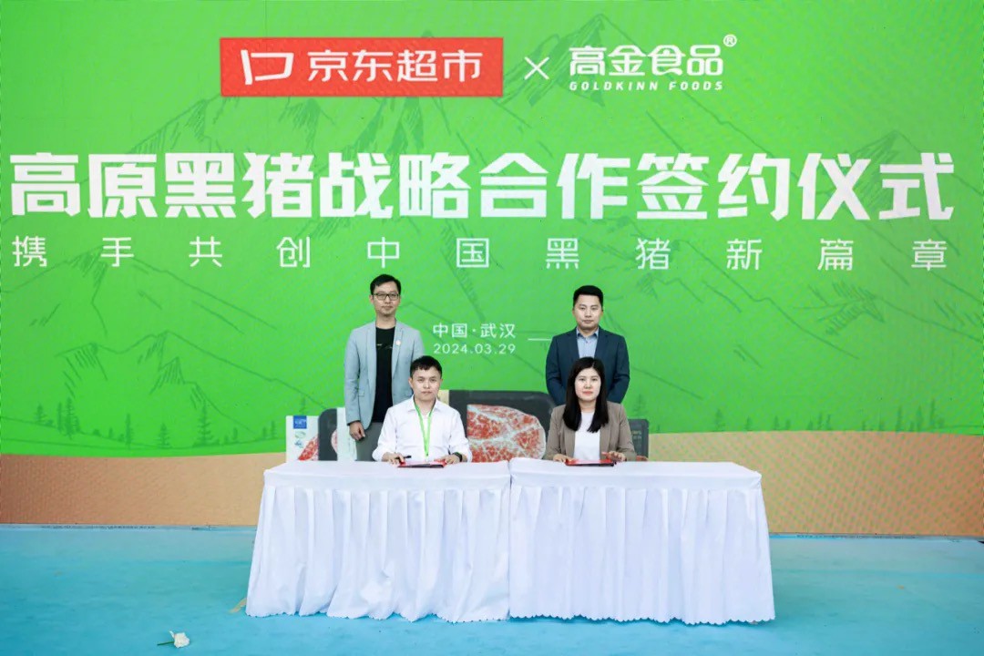 3月31日消息,“良之隆•2024第十二屆中國食材電商節(jié)”近日在武漢舉辦,會上,京東超市與高金食品簽約,圍繞黑豬產(chǎn)業(yè)達(dá)成戰(zhàn)略合作,標(biāo)志著中國黑豬產(chǎn)業(yè)開啟了又一個高質(zhì)量發(fā)展新篇章。 高金食品副總裁、市場總監(jiān)王斌正式發(fā)布了全新升級后的高原黑豬戰(zhàn)略,將依托自繁自養(yǎng)及現(xiàn)代化供應(yīng)體系,與京東等優(yōu)質(zhì)平臺深度合作,持續(xù)實(shí)現(xiàn)高原黑豬從西南到全國的布局。 京東零售生鮮及預(yù)制菜農(nóng)特總經(jīng)理李永獻(xiàn)表示,生鮮是京東非常戰(zhàn)略級的存在,希望依托京東大數(shù)據(jù)、數(shù)字化等實(shí)力,助推中國黑豬行業(yè)發(fā)展。我們看到了高金非?萍蓟F(xiàn)代化的黑豬養(yǎng)殖體系,希望通過京東平臺的橋梁作用,與高金合作,創(chuàng)造美好生活。 本次簽約儀式還受到各界嘉賓及媒體關(guān)注。中國肉類協(xié)會發(fā)來賀信,副會長高觀表示:近年來,生豬產(chǎn)業(yè)面臨了前所未有的挑戰(zhàn)。高金食品與京東生鮮的戰(zhàn)略合作,無疑為整個豬肉行業(yè)注入了新的活力,為行業(yè)樹立一個典范。 |