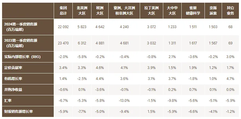 近日,可口可樂(lè)、百事、雀巢、達(dá)能等四大外資食品巨頭相繼發(fā)布了2024年一季度財(cái)報(bào)。這些財(cái)報(bào)不僅公布了第一季度全球市場(chǎng)表現(xiàn),部分企業(yè)還對(duì)中國(guó)市場(chǎng)進(jìn)行了深入的分析和展望。同時(shí),這些企業(yè)還對(duì)2024年做出新的計(jì)劃和布局。 下面我們一起來(lái)看各大食品巨頭具體情況。 01 營(yíng)收818億元 含氣飲料和果汁品類表現(xiàn)不俗 4月30日,可口可樂(lè)公司發(fā)布了2024年第一季度財(cái)報(bào)。財(cái)報(bào)顯示,公司一季度營(yíng)收113.00億美元(約合人民幣818.24億元),同比增長(zhǎng)3%,超出市場(chǎng)預(yù)期的109.7億美元;每股收益為0.72美元,增長(zhǎng)7%,高于市場(chǎng)預(yù)期的0.7美元。 財(cái)報(bào)顯示,可口可樂(lè)全球單箱銷量同比增長(zhǎng)1%。其中,含氣飲料和果汁品類表現(xiàn)不俗。具體來(lái)看,含氣飲料銷量全球增長(zhǎng)2%。旗艦品牌“可口可樂(lè)”銷量全球增長(zhǎng)2%,主要受拉丁美洲、亞太及北美市場(chǎng)的增長(zhǎng)驅(qū)動(dòng);無(wú)糖“可口可樂(lè)”銷量全球增長(zhǎng)6%;果汁飲料、乳制品和植物基飲料銷量全球增長(zhǎng)2%。 “2024年的開局表現(xiàn)令我們備受鼓舞,我們本季度在不斷變化的市場(chǎng)環(huán)境中再次實(shí)現(xiàn)了銷量、營(yíng)收和盈利的增長(zhǎng)!笨煽诳蓸(lè)公司董事會(huì)主席兼首席執(zhí)行官詹鯤杰(James Quincey)表示,“我們相信,在正確的戰(zhàn)略、清晰的系統(tǒng)協(xié)同、強(qiáng)大的產(chǎn)品組合和高效的執(zhí)行下,我們?nèi)蛳到y(tǒng)已經(jīng)為持續(xù)取得成功做好了準(zhǔn)備! 一季度財(cái)報(bào)中,可口可樂(lè)公司上調(diào)了2024年全年業(yè)績(jī)指引顯示,預(yù)計(jì)2024年全年有機(jī)營(yíng)收增速為8%至9%,高于此前預(yù)計(jì)的6%-7%;可比貨幣中性每股收益(非公認(rèn)會(huì)計(jì)準(zhǔn)則)的增速上調(diào)至11%至13%,高于此前預(yù)計(jì)的8%-10%。 在中國(guó)市場(chǎng)方面,詹鯤杰在財(cái)報(bào)電話會(huì)上表示,“今年一季度,我們?cè)谥袊?guó)市場(chǎng)取得了穩(wěn)健的進(jìn)展。同比去年中國(guó)新年的亮眼表現(xiàn),今年依然穩(wěn)中向好。我們今年在春節(jié)期間聚焦含氣飲料,結(jié)果也令人滿意。盡管面臨宏觀挑戰(zhàn),但中國(guó)市場(chǎng)仍充滿機(jī)遇。在中國(guó)市場(chǎng),我們?cè)跔I(yíng)銷、創(chuàng)新、執(zhí)行、運(yùn)營(yíng)、門店以及收入增長(zhǎng)管理這些自身能掌控的領(lǐng)域內(nèi)還有很多可以推進(jìn)的計(jì)劃! 02 百事可樂(lè)營(yíng)收1321億元 中國(guó)等市場(chǎng)需求強(qiáng)勁 4月23日,百事可樂(lè)公布了2024年第一季度業(yè)績(jī)。 財(cái)報(bào)顯示,百事可樂(lè)公布的銷售增長(zhǎng)好于預(yù)期,這要?dú)w功于其國(guó)際部門的強(qiáng)勁需求,而北美地區(qū)的銷量有所下降。該公司Q1營(yíng)收182.5億美元(約合人民幣1321.5億元),同比增長(zhǎng)2.3%,較市場(chǎng)預(yù)期高1.4億美元。公司的有機(jī)增長(zhǎng)為2.7%,超過(guò)了分析師2.3%的平均預(yù)期。 在凈利潤(rùn)方面,百事可樂(lè)季度實(shí)現(xiàn)凈利潤(rùn)為20.42億美元(約合人民幣147.8億元),同比增長(zhǎng).57%;攤薄后每股收益為1.48美元,上年同期為1.40美元。 值得一提的是,百事可樂(lè)在包括中國(guó)在內(nèi)的亞太地區(qū)表現(xiàn)尤為亮眼。財(cái)報(bào)顯示,第一季度,百事在包括中國(guó)在內(nèi)的亞太地區(qū)有機(jī)增長(zhǎng)11%;凈收入為10.64億美元,運(yùn)營(yíng)利潤(rùn)達(dá)2.33億美元;休閑食品銷量增長(zhǎng)12%,飲料銷量持平。其中,百事中國(guó)實(shí)現(xiàn)了兩位數(shù)的有機(jī)收入增長(zhǎng)。與此同時(shí),2024年迄今為止,百事公司在中國(guó)咸味零食市場(chǎng)的份額有所上漲。 百事公司董事長(zhǎng)兼首席執(zhí)行官龍嘉德先生對(duì)此表示:“我們一季度取得了出色的業(yè)績(jī)表現(xiàn),這得益于我們對(duì)市場(chǎng)卓越的執(zhí)行能力和為消費(fèi)者持續(xù)提供美味、便捷、高品質(zhì)產(chǎn)品的不懈努力。面向未來(lái),我們將繼續(xù)聚焦市場(chǎng)執(zhí)行,以滿足消費(fèi)者日益多元的需求! 同時(shí),百事公司大中華區(qū)首席執(zhí)行官兼亞太區(qū)首席增長(zhǎng)官謝長(zhǎng)安女士補(bǔ)充道:“在充滿挑戰(zhàn)的市場(chǎng)環(huán)境中,第一季度我們憑借卓越的執(zhí)行力取得了優(yōu)異成績(jī)。我們深信,憑借更高的行動(dòng)標(biāo)準(zhǔn)和決心,百事將在未來(lái)持續(xù)取得成功! 此外,百事公司還重申了2024年的展望。該公司預(yù)計(jì)全年有機(jī)收入將增長(zhǎng)至少4%,核心固定貨幣每股收益將增長(zhǎng)至少8%。 03 雀巢營(yíng)收1752億元 糖果業(yè)務(wù)成最大貢獻(xiàn)者 4月25日,雀巢發(fā)布2024年第一季度財(cái)報(bào)。 今年一季度,雀巢集團(tuán)總銷售額達(dá)到221億瑞士法郎(折合人民幣約1752億元),總銷售額減少5.9%,匯率原因?qū)е落N售額下降6.7%,凈資產(chǎn)剝離帶來(lái)的負(fù)面影響為0.6%。銷售有機(jī)增長(zhǎng)率為1.4%。 其中,雀巢大中華大區(qū)有機(jī)增長(zhǎng)率為3.7%,實(shí)際內(nèi)部增長(zhǎng)率為2.1%,定價(jià)貢獻(xiàn)率為1.5%。雀巢預(yù