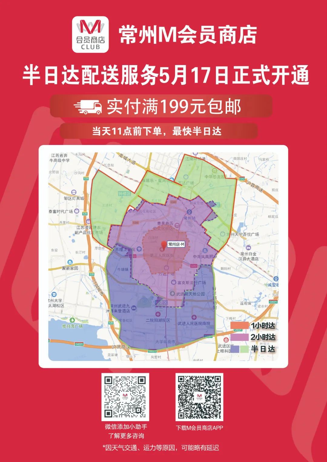 5月17日消息,M會員商店宣布常州店上線半日達(dá)服務(wù)! 在藍(lán)色區(qū)域,綠色區(qū)域為新增半日達(dá)區(qū)域,實付滿199包郵,當(dāng)天11點前下單,最快半日達(dá)。 |