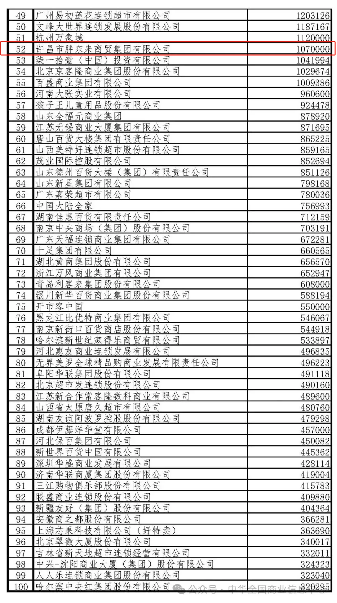 6月16日,中國商業(yè)聯(lián)合會、中華全國商業(yè)信息中心聯(lián)合發(fā)布2023年度中國零售百強(qiáng)企業(yè)名單。 統(tǒng)計(jì)數(shù)據(jù)顯示,2023年中國零售百強(qiáng)企業(yè)的銷售規(guī)模為3.4萬億元,按可比口徑計(jì)算,同比增長3.3%,增速較2022年提升7.5個(gè)百分點(diǎn)。零售百強(qiáng)企業(yè)與中國商品零售市場恢復(fù)態(tài)勢整體保持一致。 記者梳理發(fā)現(xiàn),河南3家企業(yè)上榜,分別為鄭州丹尼斯百貨有限公司、許昌市胖東來商貿(mào)集團(tuán)有限公司、河南大張實(shí)業(yè)有限公司。 其中,鄭州丹尼斯百貨以268億元的銷售規(guī)模排第29位,許昌市胖東來商貿(mào)集團(tuán)有限公司以107億元的銷售規(guī)模排第52位,河南大張實(shí)業(yè)有限公司以96.06億元的銷售規(guī)模排第56位。 |