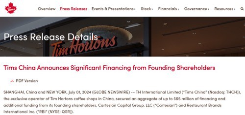 日前,Tims天好中國(guó)在一份公告中宣布,其獲得了來(lái)自創(chuàng)始股東笛卡爾資本和國(guó)際餐飲集團(tuán)RBI總計(jì)高達(dá)6500萬(wàn)美元(約合人民幣4.72億元)的融資和額外資金。 與此同時(shí),Tims天好中國(guó)在上述公告中宣布,RBI的一家子公司以1500萬(wàn)美元的企業(yè)價(jià)值從Tims天好中國(guó)收購(gòu)Popeyes中國(guó)的業(yè)務(wù)。這意味著,Popeyes中國(guó)操盤手將從Tims天好中國(guó)變成Popeyes母公司RBI。 根據(jù)公告,Tims天好中國(guó)從創(chuàng)始股東笛卡爾資本和母公司RBI處最新獲得總計(jì)高達(dá)6500萬(wàn)美元的融資和額外資金。本次融資包括5000萬(wàn)美元的可轉(zhuǎn)換債券,其中4000萬(wàn)美元已在交割時(shí)支付,其余部分將在未來(lái)7個(gè)月內(nèi)支付,每筆支付需滿足特定條件。 這些三年期債券可轉(zhuǎn)換為Tims天好中國(guó)新發(fā)行的可轉(zhuǎn)換優(yōu)先股,根據(jù)交易完成前5個(gè)交易日的加權(quán)平均成交價(jià)(VWAP)的110%可轉(zhuǎn)換為普通股。 公開(kāi)資料顯示,Tim Hortons隸屬于RBI集團(tuán),后者還擁有漢堡王、Popeyes等多個(gè)知名餐飲連鎖品牌。財(cái)報(bào)顯示,2023年,RBI的全系統(tǒng)銷售額為429億美元,總收入為70億美元,凈利潤(rùn)為17億美元,擁有31070家門店。 Tims天好中國(guó)由RBI和笛卡爾資本于2018年共同成立的合資公司,其股東陣容還包括了騰訊、紅杉資本、鐘鼎資本等。2019年,Tim Hortons正式進(jìn)入中國(guó)市場(chǎng),并在短短3年多時(shí)間后,于2022年9月在納斯達(dá)克上市。 |