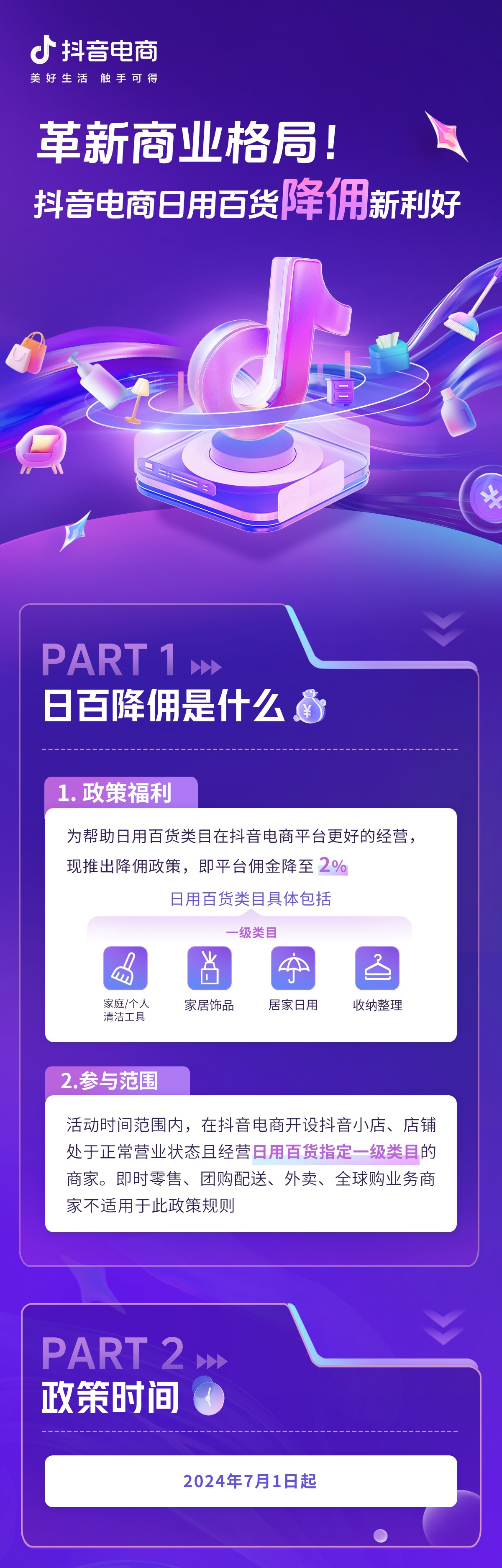 在抖音電商,日用百貨以其親民的價格、日常必需的屬性以及頻繁的消費周期,穩(wěn)坐熱門類目的寶座。從商家的角度,這個市場不僅龐大,而且準入門檻低,覆蓋的消費群體廣泛,為中小商家經營帶來多重機遇,也成為了中小商家、源頭工廠最容易切入的賽道之一。 作為電商賽道“常青樹” ,日用百貨行業(yè)增長勢頭始終強勁,然而,持續(xù)增長難、營銷投入大,資金壓力大,成本不好降……這是任何平臺任何商家都面臨的難題,對于競爭激烈的日用百貨商家們來說亦是如此。 為了進一步扶持中小商家生意增長,助力日用百貨賽道發(fā)展破局,促進生意穩(wěn)定增長,抖音電商密切關注到商家的經營痛點和發(fā)展需求,針對日用百貨這一關鍵賽道,推出了又一重大利好政策——降傭。 一、 抖音電商下調日百行業(yè)傭金低至2% 2024年7月1日,抖音電商平臺正式開啟了日用百貨行業(yè)降傭政策。自政策期起,凡在抖音電商開設抖音小店且店鋪處于正常營業(yè)狀態(tài)的商家均可參與,抖音電商針對“家庭/個人清潔工具”、“家居飾品”、“居家日用”及“收納整理”等熱門且準入門檻較低的類目,抖音電商平臺將訂單傭金扣點從原有的5%大幅下調至2%。 二、 抖音電商吸攬中小商家的決心和行動力可見 抖音電商的這一舉措,不僅直接降低了商家的運營成本,更為其留出了更多利潤空間,用于產品升級、服務優(yōu)化及市場拓展,形成良性循環(huán)。尤為值得一提的是,此次降傭政策并非孤立之舉,而是抖音電商全面扶持中小商家戰(zhàn)略的一部分。 一證開多店:多店鋪、多賽道、多收益 今年5月31日,抖音電商正式發(fā)布一證開多店的政策,允許同一個營業(yè)執(zhí)照可以開同一主體旗艦店(開店數(shù)量含官方旗艦店)、專賣店、專營店、企業(yè)店各不超過5個,個體店不超過3個,滿足了商家在注冊資金實繳制的新政策形勢下和真實場景下的經營需求。 從成本把控來看,商家注冊多家主體后對應的注冊地址、財稅成本等額外壓力增多,但從實際經營來看,商家又需要多開店鋪,做差異化的定位。一證開多店,大大降低了新老玩家的經營成本,開辟了更多的經營可能性。 保證金下調:最高降幅達90%,利好中小商家 保證金下調,也是抖音電商面向中小商家的又一利好政策,進一步減輕了商家的資金壓力,增強了商家的運營靈活性。從商家經營的角度來看,保證金相當于一筆預付款,一筆強制性的固定投入,相當于凍結了一部分流動資金,這筆資金的大小必定會影響到商家的成本投入和經營的靈活性。 抖音電商考慮到商家的切實需求,對入駐保證金作出調整,節(jié)省出來的保證金,就可以讓商家用于日常的經營,提高流動資金的規(guī)模和資金使用的靈活性,讓商家更輕盈地進行經營。 降傭減負、一證開多店、保證金下調……抖音電商一系列舉措無疑是面向商家們打出了誠意牌,這些舉措共同構成了一個全方位的支持體系,幫助商家在復雜的電商環(huán)境中實現(xiàn)穩(wěn)健增長的行業(yè)目標。 三、 “價格力”下,平臺與商家正實現(xiàn)互利共贏 隨著電商生態(tài)的不斷演進,中小商家正通過自身優(yōu)勢和創(chuàng)新模式獲得新的增長機會。一方面中小商家是大量性價比商品的供給者,可以給平臺帶來繁榮的品類,供給豐富,吸引消費者,同時在面對變化時,中小商家調整速度快,更具靈活性。另一方面,以抖音電商平臺為代表的全域興趣電商模式為中小商家提供了更直接接觸消費者的途徑,幫助商家更有效地觸達潛在客戶,提升銷售效率和品牌影響力。 在這樣的大環(huán)境下,抖音電商平臺通過降傭、減負、增效等多重措施,持續(xù)為商家提供實實在在的支持,助力其在復雜多變的市場環(huán)境中穩(wěn)健成長。例如此次抖音電商推出的降傭政策,顯著減低了日百賽道商家的經營成本,讓商家有能力提供更多的優(yōu)價好物,提升商品的價格競爭力以實現(xiàn)生意增量。同時,降傭金額不設上限,商家多賣多得,可以快速完成資金回流,形成良性循環(huán),有利于商家們長期經營,是打造親民生意圈的有力舉措。 2024年,日用百貨將繼續(xù)成為抖音電商的熱門賽道,中小商家在此有著無限的發(fā)展?jié)摿。日用百貨的降傭政策的發(fā)布,影響覆蓋面廣闊,不僅是對現(xiàn)有商家的一劑強心針,更是對即將踏入抖音電商領域的新玩家們的一次隆重邀請。 相信隨著抖音電商平臺的不斷完善和更多創(chuàng)新扶持政策的陸續(xù)出臺,中小商家將有機會在這一平臺上獲得更大的發(fā)展空間。特別是對于日用百貨這類與日常生活緊密相關的商品,抖音電商的降傭政策和其他扶持措施將極大地激發(fā)市場的活力,促進產品的多樣化和服務的個性化,進而推動整個電商生態(tài)系統(tǒng)的繁榮與進步。 |
