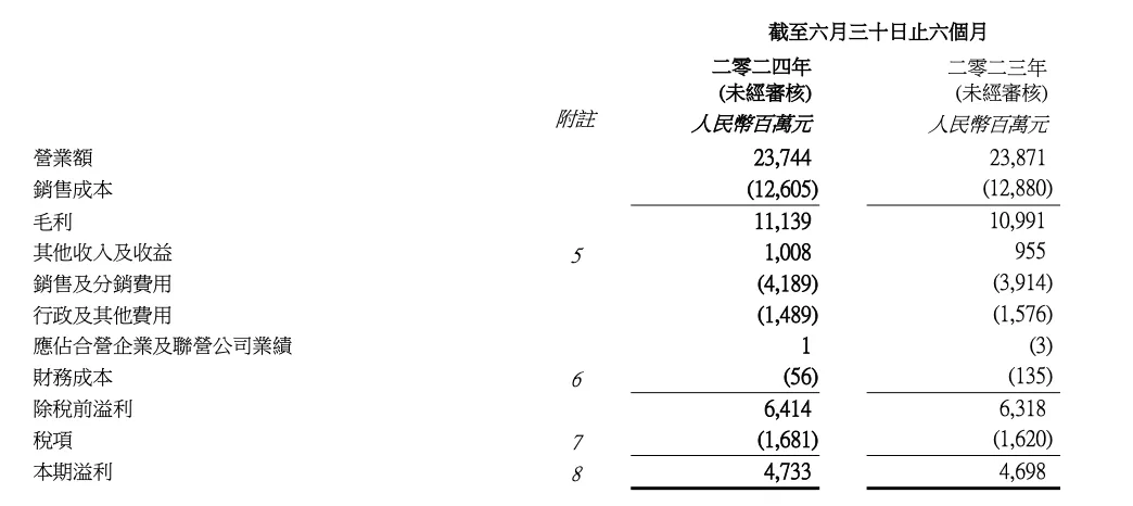 8月19日,華潤(rùn)啤酒公布中期業(yè)績(jī)。 業(yè)績(jī)報(bào)告顯示,華潤(rùn)啤酒上半年綜合營(yíng)業(yè)額為人民幣237.44億元,受益于啤酒和白酒業(yè)務(wù)高端化戰(zhàn)略的持續(xù)發(fā)展。該集團(tuán)股東應(yīng)占溢利為人民幣47.05億元,較去年同期上升1.2%。 華潤(rùn)啤酒業(yè)績(jī) 圖片來(lái)源:華潤(rùn)啤酒 啤酒業(yè)務(wù)方面,整體實(shí)現(xiàn)啤酒銷(xiāo)量約6,348,000千升,同比下降3.4%,優(yōu)于部分具規(guī)模的啤酒企業(yè)。 圖片來(lái)源:華潤(rùn)啤酒 2024年上半年,中檔及以上啤酒銷(xiāo)量占比首次于上半年超過(guò)50%。次高檔及以上啤酒銷(xiāo)量較去年同期實(shí)現(xiàn)單位數(shù)增長(zhǎng),其中通過(guò)電商渠道的銷(xiāo)量較去年同期錄得約60%增長(zhǎng)。高檔及以上啤酒銷(xiāo)量較去年同期錄得超過(guò)10%增長(zhǎng)。 受益于持續(xù)的高端化發(fā)展,整體啤酒平均銷(xiāo)售價(jià)格同比上升2.0%,部份包裝物成本下降,其啤酒業(yè)務(wù)于2024年上半年的毛利率上升0.6個(gè)百分點(diǎn)至45.8%。 集團(tuán)持續(xù)采取多項(xiàng)降本增效措施,其啤酒業(yè)務(wù)經(jīng)營(yíng)費(fèi)用同比基本持平,并實(shí)現(xiàn)未計(jì)利息及稅項(xiàng)前盈利人民幣63.65億元,較去年同期上升約2.6%。若不計(jì)已確認(rèn)推行產(chǎn)能優(yōu)化所產(chǎn)生的相關(guān)固定資產(chǎn)減值虧損和一次性員工補(bǔ)償及安置費(fèi)用之影響,啤酒業(yè)務(wù)未計(jì)利息及稅項(xiàng)前盈利較2019年上半年疫情前翻番,未計(jì)利息及稅項(xiàng)前盈利率亦大幅提升多于10個(gè)百分點(diǎn)至28.3%,創(chuàng)歷史新高。 展望2024年下半年,面對(duì)市場(chǎng)眾多變化,華潤(rùn)啤酒將堅(jiān)持增長(zhǎng)為第一策略,堅(jiān)持長(zhǎng)期主義,致力追求高質(zhì)量發(fā)展,積極深化「啤酒+白酒」雙賦能的業(yè)務(wù)模式,并加大力度控制資本性開(kāi)支,積極爭(zhēng)取全年?duì)I業(yè)額和利潤(rùn)增長(zhǎng)。 |