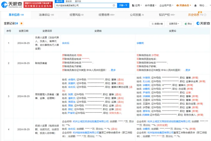 企查查APP顯示,近日,杭州娃哈哈集團有限公司發(fā)生工商變更,宗慶后卸任法定代表人,董事長兼總經理職務,均由宗馥莉接任。同時,張暉、吳建林等多名高管退出董事、監(jiān)事職務,新增葉雅瓊、費軍偉等為董事,王國祥為董事兼副總經理。 企查查股權穿透顯示,宗慶后退出股東行列,杭州娃哈哈集團有限公司現由宗馥莉、杭州上城區(qū)文商旅投資控股集團有限公司、杭州娃哈哈集團有限公司基層工會聯(lián)合委員會(職工持股會)3名股東共同持股。 公開資料顯示,董事葉雅瓊是娃哈哈政務中心總監(jiān),董事王國祥為娃哈哈集團副總經理,董事費軍偉為杭州上城文商旅發(fā)展有限公司法定代表人、總經理,董事洪嬋嬋為宏勝集團管理副總經理,監(jiān)事會主席孔沁銘來自上城區(qū)財政局。監(jiān)事尹緒瓊為娃哈哈創(chuàng)投總經理。 今年7月份的“辭職風波”一度讓宗馥莉陷入輿論漩渦中,7月22日,娃哈哈發(fā)布聲明稱,為確保公司的平穩(wěn)健康發(fā)展,經各股東友好協(xié)商,宗馥莉女士決定繼續(xù)履行娃哈哈集團的相關管理職責。 本次宗馥莉接任州娃哈哈集團有限公司的各個職位,意味著宗馥莉全面接手娃哈哈集團公司股份。 據天眼查顯示,杭州上城區(qū)文商旅投資控股集團有限公司持有娃哈哈集團46%的股份,是娃哈哈集團的第一大股東,其背后是杭州上城區(qū)國資委。宗慶后本人持股29.4%,剩余24.6%股份則由娃哈哈職工持股平臺持有。 根據天眼查顯示,目前宗馥莉持有29.4%,接手了宗慶后所持的娃哈哈集團股份。但她仍然并非娃哈哈的第一大股東,掌權仍需要娃哈哈職工持股平臺的配合。 |