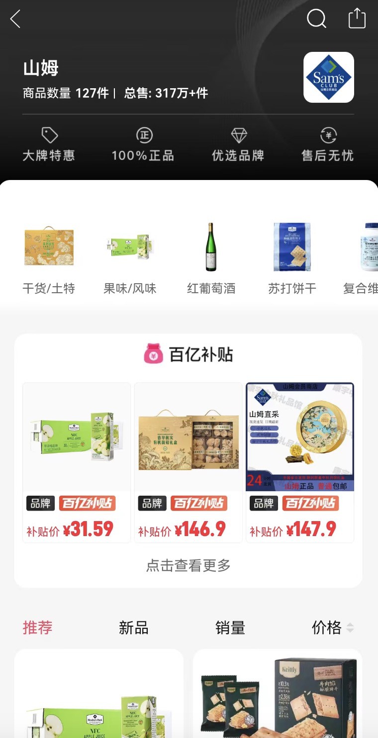 9月11日消息,沃爾瑪中國向零售氪星球作出最新回應,否認了山姆入駐拼多多的傳聞。 此前,拼多多上線山姆商品專區(qū)的消息引發(fā)熱議。 據(jù)悉,在拼多多山姆專區(qū)中,商品均帶有“品牌”認證標識,并承諾“100%正品,假一賠十”。 目前,拼多多上可購買的山姆品牌商品達百余款,覆蓋酒類、飲料、零食、保健品等多個熱門品類。 針對上述傳言,沃爾瑪中國表示:“山姆對未來發(fā)展布局有著清晰的戰(zhàn)略,通過以門店為核心的全渠道,專注、高效地服務會員,保證良好的購物體驗。目前,山姆電商業(yè)務涵蓋多個渠道,山姆app及山姆小程序上提供最快1小時的‘極速達’、全城配以及全國配。此外,會員還可以通過京東平臺上的山姆會員商店官方旗艦店、京東到家上的山姆會員商店下單! 值得注意的是,因為“代購轉(zhuǎn)售合法”,除京東外,暢銷于拼多多等各大電商平臺的山姆商品,實際非山姆官方運營,而是山姆的代購在售賣。 沃爾瑪中國強調(diào):“目前,山姆并未在上述平臺以外的其他渠道開展業(yè)務。為確保能購買到高品質(zhì)商品和正品,享受山姆的優(yōu)質(zhì)服務,請會員選擇山姆官方認證的渠道! 沃爾瑪FY25Q2最新財報顯示,電商業(yè)務是沃爾瑪中國新的增長支柱,電商業(yè)務凈銷售額增長23%,電商滲透率達49%。而山姆會員店中國在這個季度兩位數(shù)銷售增長,大約一半都來自線上,“一小時極速達”訂單增長28%。 |