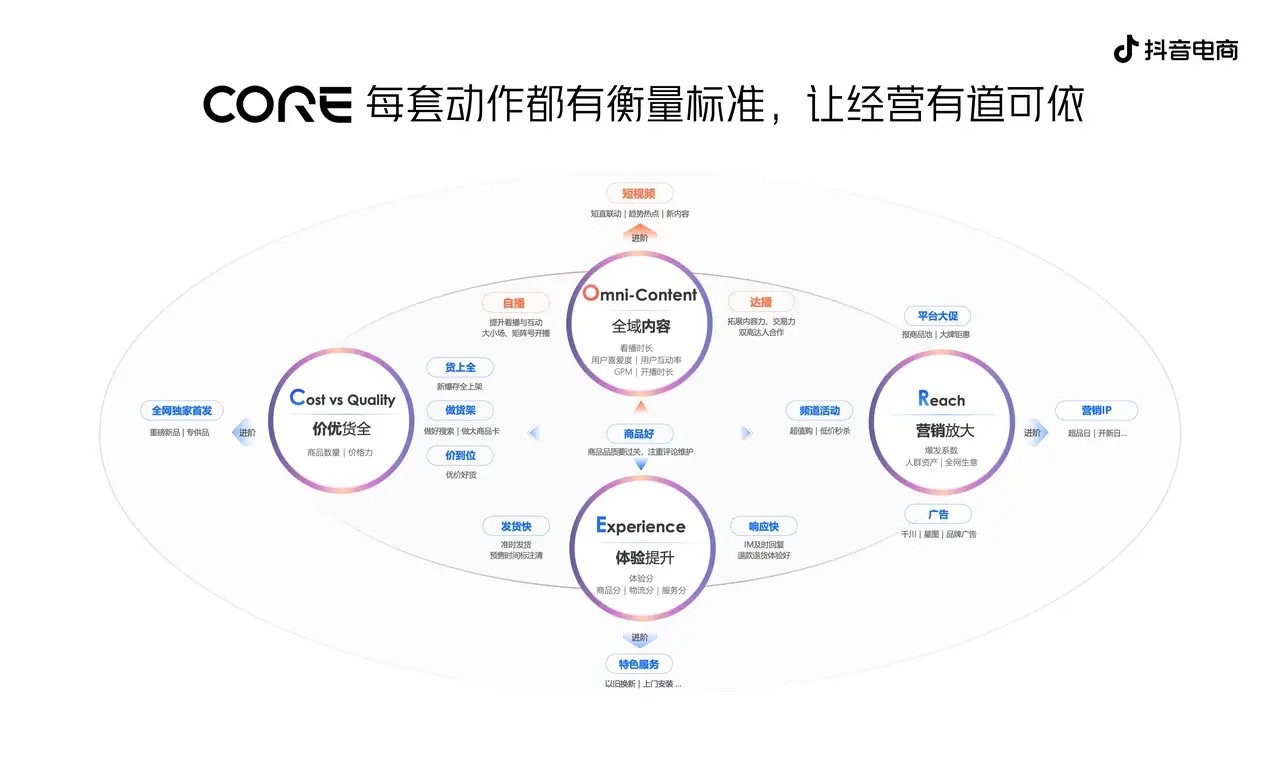 過去一年,電商行業(yè)不斷加速演化,機遇與挑戰(zhàn)層出不窮。在復(fù)雜的經(jīng)營環(huán)境中,抖音電商依然保持著蓬勃的發(fā)展態(tài)勢,平臺GMV較去年增長46%,貨架場GMV較去年增長86%。充滿活力的生態(tài)吸引新商家不斷入駐,同比增長83%。生生不息的發(fā)展動力,讓抖音電商成為確定性增長的陣地。 如何抓住平臺發(fā)展機遇,為商家找到更確定、更高效的增長方法與路徑,帶著這個命題,抖音電商發(fā)布全新的CORE經(jīng)營方法論,以“劃重點”的方式告訴商家應(yīng)該做什么、怎么做、做多少,把做抖音電商變成一場“開卷考試”,帶領(lǐng)商家掌握正確的解題方法。 01:讀懂CORE經(jīng)營方法論 找到確定性流量 尋找確定性的答案,從理解流量開始。 隨著抖音電商不斷完善全域場景,用戶愿意看、主動搜、經(jīng)常逛、持續(xù)買,消費需求獲得全面滿足。誰能滿足好用戶需求,誰就能贏得更多流量;氐缴碳医(jīng)營視角,這意味著,在商品、內(nèi)容、營銷、體驗等方方面面都能讓消費者喜歡、滿意的商家,就能獲得更多流量。 過去半年,抖音電商沿著流量尋跡問路,找出了提升流量獲取的4組經(jīng)營動作,全面迭代經(jīng)營方法論,總結(jié)為"CORE"4個字母: Cost vs Quality 價優(yōu)貨全 Omni-Content 全域內(nèi)容 Reach 營銷放大 Experience 體驗提升 今年,抖音電商進一步升級流量算法機制,電商內(nèi)容將在“內(nèi)容”和“交易”兩個流量池同時分發(fā),做好全域內(nèi)容"O"將持續(xù)激發(fā)用戶需求,突破流量的天花板,同時做好“C”、“R”、“E”提升交易轉(zhuǎn)化,承接好用戶需求,CORE為生意帶來更廣闊的增長機會。 02:做好4組動作 關(guān)注核心指標(biāo),收獲確定性增長 做好“C-價優(yōu)貨全”,打好經(jīng)營基礎(chǔ) 商品是電商的基礎(chǔ),首先要把貨上全、價到位、持續(xù)做好貨架優(yōu)化。在抖音電商推出全網(wǎng)獨家首發(fā)產(chǎn)品,不斷豐富貨盤供給,更是“C”的加分項。經(jīng)營過程中,商家需要關(guān)注商品數(shù)量、價格力兩項關(guān)鍵指標(biāo),了解自己的商品夠不夠豐富,價格有沒有競爭力。 探索“O-全域內(nèi)容”,拓寬生意可能 全域內(nèi)容包括直播和短視頻,商家可以自己做,還可以找達人做。呼應(yīng)新的流量機制,商家應(yīng)積極探索新內(nèi)容形式與場景,打造用戶愛看、愿意互動與關(guān)注的好內(nèi)容,并做好短視頻與直播的聯(lián)動,提升看播時長、用戶喜愛度、用戶互動率等關(guān)鍵指標(biāo),打開內(nèi)容流量的增長空間。 重視“R-營銷放大”,加速生意爆發(fā) 抖音電商已成為品牌開展品效營銷的主要陣地。商家可以通過商城頻道、平臺大促、廣告等營銷動作做放大,并積極參與超品日、開新日等平臺營銷IP活動,加速品效一體爆發(fā)。在抖音電商做營銷,商家既能收獲短期的爆發(fā)系數(shù)、同時又將帶動更具長效價值的人群資產(chǎn)與全網(wǎng)生意。 關(guān)注“E-體驗提升”,推動長效增長 優(yōu)質(zhì)的服務(wù)體驗是經(jīng)營的底線,更是未來的上限。因此,商家需要日常關(guān)注體驗分,商品好、發(fā)貨快、響應(yīng)快,力爭滿分經(jīng)營。特別在家電家具等類目,服務(wù)能力更是消費者購買決策中非常重要的一環(huán),商家還要提供以舊換新、上門安裝等特色服務(wù)來持續(xù)提升用戶體驗。 03:靈活應(yīng)用CORE 結(jié)合產(chǎn)品工具逐步完成生意進階 在實際運用的過程中,中小商家可以優(yōu)先做好其中一到兩件事,以單點突破帶動全域爆發(fā);大品牌應(yīng)該做到全面布局,引領(lǐng)全盤增長。商家可以登錄抖音電商學(xué)習(xí)中心案例專區(qū),了解更多CORE經(jīng)營方法論下的成功案例。 同時,為了幫助商家用好CORE經(jīng)營方法論,抖音電商也特別開發(fā)了相關(guān)數(shù)據(jù)產(chǎn)品和配套工具。 在抖音電商羅盤CORE專區(qū),能夠查看CORE四大版塊對應(yīng)的全部指標(biāo),商家可以通過關(guān)鍵指標(biāo)了解“做什么、做多少”能獲更多流量,也可以對比行業(yè)均值直觀判斷自己“哪里做得不夠好”,一步步對癥優(yōu)化。 此外,抖音電商還聯(lián)合 DOU Lab | 抖音電商生態(tài)實驗室,與品牌服務(wù)商一起共創(chuàng),針對CORE四大版塊下常見的經(jīng)營痛點,打造了一系列工具與解決方案,例如“PtG價量模型”(C)、“全域內(nèi)容制造機”(O)、“營銷價值度量”(R)、“DCS體驗分提升寶典”(E)等...... 作為一把能夠打開確定性增長的“萬能鑰匙”,不同行業(yè)、不同階段、不同規(guī)模的商家都可以循著CORE經(jīng)營方法論實現(xiàn)生意確定性增長。對CORE的理解和應(yīng)用,也將幫助商家更系統(tǒng)地做好全盤經(jīng)營,更清晰地謀劃生意進階路徑,破除“流量焦慮”,在變化的市場中找到確定性的生意增長。 【廣告】免責(zé)聲明:本內(nèi)容為廣告,相關(guān)素材由廣告主提供,廣告主對本廣告內(nèi)容的真實性負(fù)責(zé)。本網(wǎng)發(fā)布目的在于傳遞更多信息,并不代表本網(wǎng)贊同其觀點和對其真實性負(fù)責(zé),廣告內(nèi)容僅供讀者參考。 |