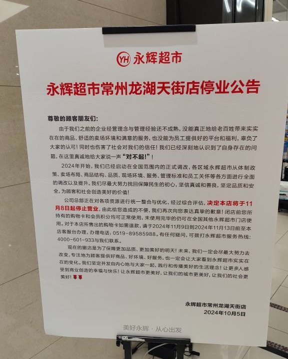 10月6日消息,永輝超市常州龍湖天街店發(fā)布公告,將于11月8日起停止營業(yè),這也是常州最后一家門店。 對于此次閉店決定,永輝超市公告中表示,企業(yè)在管理理念和運營經(jīng)驗上的不足,以及門店經(jīng)營未達預期標準。公司對此深表歉意,并透露正積極整合與優(yōu)化資源,經(jīng)過深思熟慮后,決定于11月8日正式停止這家門店的運營。 為減少顧客損失,公告還指出,在閉店前顧客手中的購物卡和會員積分均可正常使用,未使用完畢的仍可再全國其他永輝超市門店使用。對于本店所售出的購物卡如需退款,可以前往本店客服服務臺辦理。 據(jù)了解,永輝龍湖天街店位于常州市鐘樓區(qū)勤業(yè)路295號負一樓,總面積近5000平米,自2018年9月28日開業(yè)以來,陪伴常州市民已有6年之久,如今卻不得不面臨閉店的命運。 就在不久之前永輝超市的股權(quán)結(jié)構(gòu)也發(fā)生了重大變化。 永輝超市9月23日公告稱,公司股東牛奶公司、京東世貿(mào)和宿遷涵邦擬通過協(xié)議轉(zhuǎn)讓的方式向廣東駿才國際商貿(mào)有限公司分別轉(zhuǎn)讓其所持有的公司19.13億股股份、3.67億股股份和3.87億股股份,分別占公司總股本的21.08%、4.05%和4.27%。 此次交易完成后,公司第一大股東將變更為駿才國際,合計持有公司股份29.4%。駿才國際及其實控方名創(chuàng)優(yōu)品將與永輝超市攜手向品質(zhì)零售模式轉(zhuǎn)型。 同日,名創(chuàng)優(yōu)品在港交所公告,以63億元收購永輝超市29.4%的股權(quán),該交易完成后名創(chuàng)優(yōu)品預計將成為永輝超市第一大股東,進一步擴大其線下零售版圖。收購完成后,雙方合作可用較低成本開發(fā)更優(yōu)質(zhì)的自主品牌產(chǎn)品,預計這將提高差異化競爭能力。 然而,永輝超市的業(yè)績表現(xiàn)卻不盡如人意。2024年上半年財報顯示,公司實現(xiàn)營業(yè)收入約377.79億元,同比下降10.11%;實現(xiàn)歸屬于上市公司股東的凈利潤約為2.75億元,同比下降26.34%。 面對業(yè)績壓力,永輝超市采取了多項措施進行調(diào)整,包括引入胖東來幫扶+自主調(diào)改雙線并行等策略。盡管如此,公司仍然關(guān)閉了62家門店,而新增門店數(shù)量僅為5家。 常州地區(qū)的永輝超市也未能幸免于難。今年以來,常州已有多家永輝超市門店陸續(xù)關(guān)閉,包括金壇新天地店、武進萬達店、天寧吾悅店以及青楓公園寶龍店等。隨著龍湖天街店的即將閉店,永輝超市在常州市場的門店將徹底清零。 不過,業(yè)內(nèi)人士認為,永輝超市或許能借機走出全新的道路。在接受胖東來調(diào)改后,永輝超市自有商品正在進行升級變化。如果名創(chuàng)優(yōu)品能將自己的供應鏈體系與永輝超市的進行優(yōu)勢互補,或許會有驚喜出現(xiàn)。 |