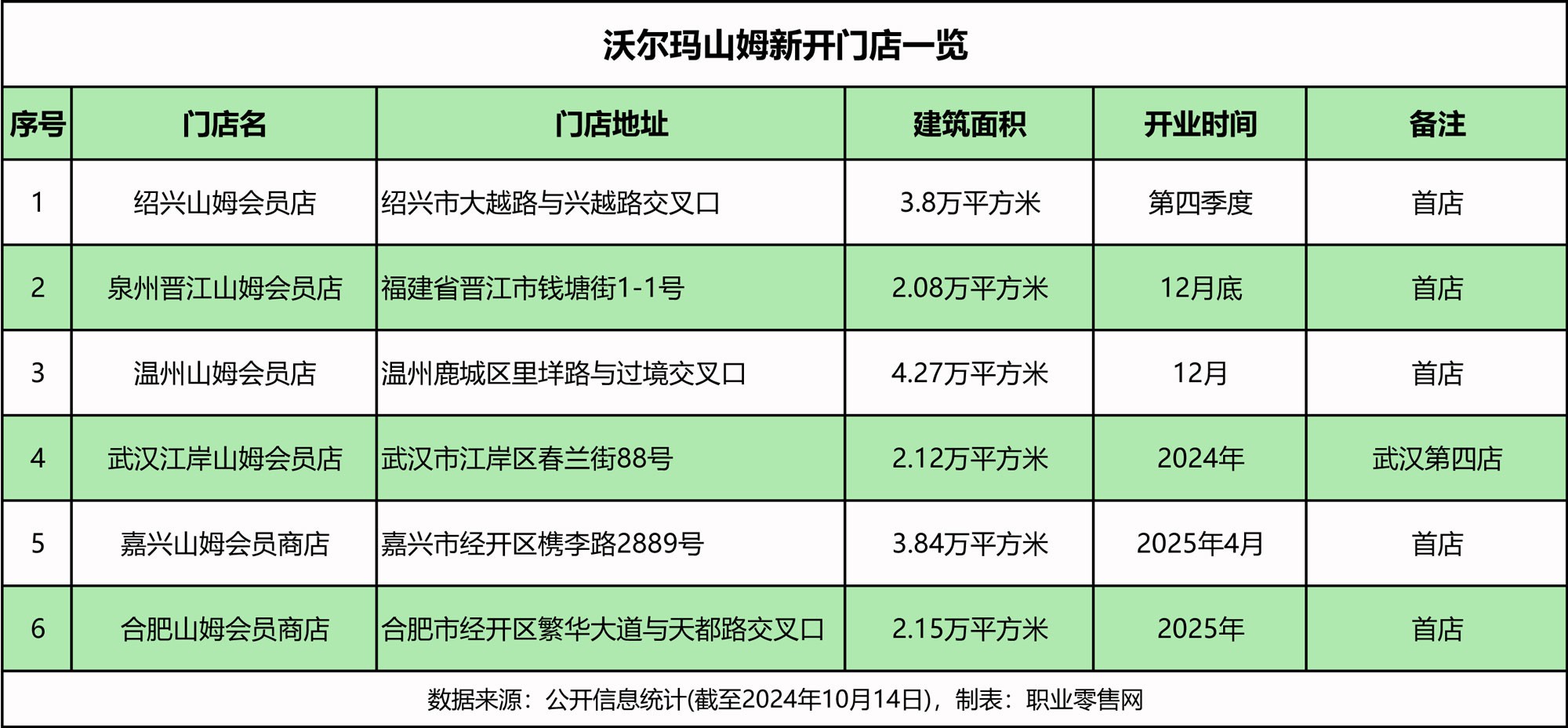 《職業(yè)零售網(wǎng)》獲悉,10月14日,沃爾瑪招聘官方公眾號(hào)發(fā)布了“10月份新店招聘信息”,宣布山姆會(huì)員店將在紹興、泉州、溫州、武漢、嘉興、合肥等六座城市開(kāi)設(shè)新店,并在積極招聘相關(guān)工作人員。 與9月份發(fā)布的招聘信息相比,新增合肥經(jīng)開(kāi)店,標(biāo)志著山姆會(huì)員店全國(guó)布局再下一城。同時(shí),東莞山姆會(huì)員店定于10月19日盛大開(kāi)業(yè),成為山姆本年度繼南京江北店(5月25日)與成都武侯店(8月31日)后的第三家新店。 招聘信息顯示,此次新店招聘涉及多個(gè)職位,包括營(yíng)運(yùn)副總、生鮮主廚、生鮮大廚、主廚助理、鮮食/樓面/倉(cāng)臺(tái)/收貨主管、會(huì)籍服務(wù)/收銀/服務(wù)臺(tái)/網(wǎng)購(gòu)主管、肉類(lèi)/熟食/壽司技工、會(huì)籍負(fù)責(zé)人、員工/員工指導(dǎo)、人事行政經(jīng)理/人力資源專(zhuān)員等崗位。 除山姆會(huì)員店外,昆明龍泉大賣(mài)場(chǎng)、昆明正大大賣(mài)場(chǎng)也在招聘中,職位包括人事行政經(jīng)理/HR實(shí)習(xí)生、鮮食/前臺(tái)/樓面/線(xiàn)上運(yùn)營(yíng)/電商/收貨主管、海鮮肉類(lèi)/熟食/面包技工、鮮食/前臺(tái)/樓面/線(xiàn)上運(yùn)營(yíng)/電商/收貨員工等。 值得注意的是,昆明龍泉店與正大店則是接手原家樂(lè)福超市門(mén)店。自2023年10月23日家樂(lè)福昆明白云店關(guān)閉后,家樂(lè)福在昆明旗下11家門(mén)店已全部關(guān)停,正式退出當(dāng)?shù)厥袌?chǎng)。原昆明家樂(lè)福超市龍泉店與正大店的位置,則被沃爾瑪接手開(kāi)設(shè)兩家全新門(mén)店,預(yù)計(jì)10月份開(kāi)業(yè)。 根據(jù)公開(kāi)信息統(tǒng)計(jì),在山姆會(huì)員店6家新店中,除了嘉興店和合肥經(jīng)開(kāi)店外,位于武漢江岸店、泉州晉江店、浙江紹興店和溫州店的四家均計(jì)劃在2024年開(kāi)業(yè)。 紹興山姆會(huì)員商店,位于大越路與興越路交叉口,是山姆在紹興第一家門(mén)店,據(jù)說(shuō)是長(zhǎng)三角最大的山姆會(huì)員店。該項(xiàng)目總投資約5.2億元,總用地面積約2.55萬(wàn)平方米,總建筑面積約8萬(wàn)平方米,其中地上建筑面積3.83萬(wàn)平方米,地下建筑面積4.2萬(wàn)平方米。目前,整個(gè)賣(mài)場(chǎng)即將建成,預(yù)計(jì)今年第四季度完工,對(duì)外營(yíng)業(yè)。此前,紹興越城極速達(dá)已于8月11日正式上線(xiàn)。 溫州山姆會(huì)員店,位于溫州市鹿城區(qū)里垟路與過(guò)境路交叉口,是山姆在溫州的第一家門(mén)店。該項(xiàng)目占地面積約2.83萬(wàn)平方米,一共分為2層,共規(guī)劃1400余個(gè)停車(chē)位。 去年底,溫州山姆會(huì)員店已率先封頂,原來(lái)預(yù)計(jì)于2025年上半年開(kāi)業(yè)。然而,根據(jù)最新消息,該項(xiàng)目計(jì)劃今年12月開(kāi)業(yè)。它將打造省內(nèi)體量最大、配貨最全、庫(kù)存最足的山姆會(huì)員系列浙南第一店。 目前,山姆LOGO已正式懸掛,正處于緊鑼密鼓的籌備與建設(shè)沖刺階段。 泉州晉江山姆會(huì)員商店,位于晉江市錢(qián)塘街1-1號(hào),將成為繼昆山山姆之后,全國(guó)范圍內(nèi)第二家進(jìn)駐縣級(jí)市的山姆會(huì)員店。 該項(xiàng)目被分為兩期進(jìn)行,一期主要建設(shè)山姆會(huì)員商店,占地約31.274畝,總建筑面積接近7.4萬(wàn)平方米;二期則計(jì)劃投資打造周邊的商業(yè)配套設(shè)施,占地約19.657畝,總建筑面積約為6.4萬(wàn)平方米。 目前,整個(gè)項(xiàng)目的建筑外立面已完工,目前正在進(jìn)行內(nèi)部的一層、二層的裝修及外部的景觀施工。最新消息顯示,泉州晉江山姆會(huì)員店預(yù)計(jì)將于今年12月底開(kāi)業(yè)。 武漢江岸山姆會(huì)員商店,位于江岸區(qū)春蘭街88號(hào),靠近地鐵6號(hào)線(xiàn)楊汊湖站,是山姆在武漢的第四家門(mén)店,預(yù)計(jì)將于年底開(kāi)業(yè)。 根據(jù)此前公示顯示,該項(xiàng)目總建筑面積約8.58萬(wàn)平方米,從規(guī)劃公示的示意圖顯示,其中一棟商業(yè)建筑具有山姆會(huì)員店風(fēng)格。項(xiàng)目整體用地面積26766.96平方米,商業(yè)面積21604.72平方米,商務(wù)面積16554.24平方米,容積率1.38,配備機(jī)動(dòng)車(chē)位658個(gè),非機(jī)動(dòng)車(chē)位555個(gè)。 目前,武漢在運(yùn)營(yíng)和在建山姆會(huì)員店已經(jīng)有4家,包括2014年開(kāi)業(yè)的硚口店、2021年開(kāi)業(yè)的光谷店、2023年開(kāi)業(yè)的漢陽(yáng)店,以及即將在年底開(kāi)業(yè)的江岸店。 嘉興山姆會(huì)員商店,位于經(jīng)開(kāi)區(qū)槜李路2889號(hào),是山姆在嘉興第一家門(mén)店。項(xiàng)目總建筑面積約3.83萬(wàn)平方米,分地上二層和地下二層,其中地上是商店,地下是停車(chē)場(chǎng)。 據(jù)嘉興經(jīng)區(qū)管委會(huì)發(fā)布的信息,嘉興山姆會(huì)員商店力爭(zhēng)在今年12月完成室內(nèi)裝修。據(jù)媒體報(bào)道,嘉興山姆會(huì)員商店將在2025年3月正式開(kāi)業(yè)。 合肥山姆會(huì)員商店,位于經(jīng)開(kāi)區(qū)天都路與繁華大道交口西北角,鄰近明珠廣場(chǎng),建筑面積約6.17萬(wàn)平方米(地上約2.15萬(wàn)平方米,地下約4.02萬(wàn)平方米),地上一層為商業(yè)部分,地下兩層為停車(chē)場(chǎng)。 經(jīng)開(kāi)區(qū)山姆會(huì)員店項(xiàng)目于2024年1