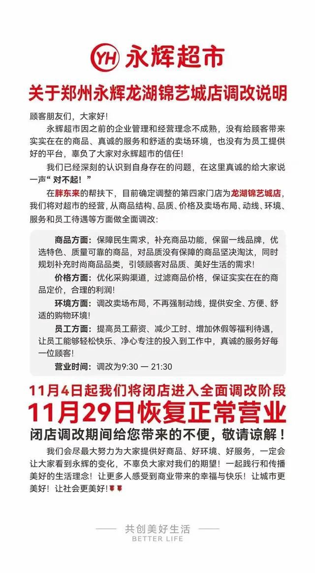 “河南永輝超市”微信公眾號(hào)日前發(fā)文,鄭州永輝超市第四家胖東來(lái)幫扶調(diào)改店——龍湖錦藝城店11月4日起閉店進(jìn)入全面調(diào)改,11月29日恢復(fù)正常營(yíng)業(yè)。 據(jù)悉,今年以來(lái),胖東來(lái)對(duì)永輝超市持續(xù)調(diào)改,目前已調(diào)改3家鄭州門店。 據(jù)“河南永輝超市”微信公眾號(hào),永輝超市鄭州信萬(wàn)廣場(chǎng)店是胖東來(lái)調(diào)改永輝超市的第一家門店,該門店經(jīng)過(guò)19天的閉店改造,在今年6月19日正式恢復(fù)營(yíng)業(yè)。 7月17日,永輝超市鄭州瀚海海尚店閉店進(jìn)入全面調(diào)改階段,并在8月初恢復(fù)正常營(yíng)業(yè),成為第二家調(diào)改門店。 胖東來(lái)調(diào)改的第三家永輝超市門店——鄭州裕華廣場(chǎng)店則在今年9月20日開(kāi)業(yè)。調(diào)改后一段時(shí)間內(nèi),該門店?duì)I業(yè)額、客流均有明顯增長(zhǎng)。 胖東來(lái)相關(guān)人士告訴中國(guó)證券報(bào)記者,公司已完成對(duì)永輝超市三家門店的調(diào)改,未來(lái)永輝超市將以自主調(diào)改為主。 “胖東來(lái)只是一個(gè)區(qū)域性企業(yè),沒(méi)有太多人力和精力對(duì)所有店面進(jìn)行調(diào)改。但是胖東來(lái)希望能幫助到更多同行,讓行業(yè)生態(tài)變好。在每次調(diào)改過(guò)程中,都有很多同行學(xué)習(xí)。胖東來(lái)希望通過(guò)觀摩學(xué)習(xí),同行能夠自主進(jìn)行調(diào)改!鄙鲜雠謻|來(lái)相關(guān)人士表示。 從股價(jià)表現(xiàn)看,截至11月1日收盤,永輝超市股價(jià)報(bào)5.07元/股,今年以來(lái)累計(jì)漲幅達(dá)79.79%。 永輝超市三季報(bào)顯示,今年前三季度,公司共實(shí)現(xiàn)營(yíng)業(yè)收入約為545.49億元,同比下降12.14%;歸屬于上市公司股東的凈利潤(rùn)為虧損0.78億元。 |