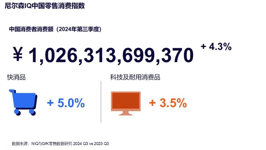 2024年第三季度,中國消費(fèi)者在快速消費(fèi)品和科技及耐用消費(fèi)品市場(chǎng)的消費(fèi)額與去年同期相比增長4.3%,相比二季度0.9%的增速有較大增幅,其中快速消費(fèi)品同比增長5.0%,科技及耐用消費(fèi)品同比增長3.51%。該數(shù)據(jù)來源于尼爾森IQ零售研究監(jiān)測(cè)數(shù)據(jù),旨在衡量全球各地零售店銷售的快速消費(fèi)品和非食品消費(fèi)品的銷售額。 經(jīng)濟(jì)復(fù)蘇下的快消市場(chǎng)逐步回暖,以價(jià)換量成為銷售回升主旋律 尼爾森IQ 零售消費(fèi)指數(shù)顯示,快消市場(chǎng)逐步回暖,2024年1-9月,快消品全渠道銷售額同比增長2.9%,線上增速尤為顯著,達(dá)11.1%,線下增幅為-1.2%,跌勢(shì)趨緩。進(jìn)入第三季度,中國快消市場(chǎng)增長勢(shì)頭更加明顯,全渠道同比增長5%,其中,線上渠道增速為14.3%,線下渠道回升至0.7%。 同時(shí),消費(fèi)訴求分層正在推動(dòng)零售業(yè)態(tài)的加速分化。尼爾森IQ監(jiān)測(cè)的620萬家門店數(shù)據(jù)顯示,2024年前三季度,快消市場(chǎng)全渠道增長保持平穩(wěn),線下渠道分布呈現(xiàn)近場(chǎng)化、生鮮化趨勢(shì),小型近場(chǎng)渠道以其便捷性持續(xù)領(lǐng)漲線下市場(chǎng),其中,食雜店銷售額同比增速顯著,達(dá)4.7%。新興渠道如零食店、會(huì)員店、餐飲及娛樂渠道展現(xiàn)活力。此外,大賣場(chǎng)雖面臨挑戰(zhàn),但因其商品品質(zhì)和店內(nèi)購物體驗(yàn)的優(yōu)勢(shì),跌幅有所收窄,表現(xiàn)優(yōu)于去年同期。從線上渠道看,內(nèi)容電商繼續(xù)帶動(dòng)增長,銷售額同比增幅達(dá)31%。綜合電商因其提供有價(jià)值且多樣化選擇而受到消費(fèi)者青睞,實(shí)現(xiàn)了2%的增長。 在品類方面,第三季度酒水飲料銷售額同比增長繼續(xù)領(lǐng)跑市場(chǎng),增幅為8.7%,個(gè)護(hù)產(chǎn)品增幅最大。此外,常溫食品、紙制品,以及護(hù)理類產(chǎn)品,包括寵物護(hù)理和家居護(hù)理,銷售額同比均有所上升。 NIQ中國客戶成功零售部負(fù)責(zé)人王伶表示:“店鋪小型化是近場(chǎng)化發(fā)展的體現(xiàn)之一,數(shù)據(jù)顯示,52%的社區(qū)小型超市面積在100平方米以下,相比去年提升3個(gè)百分點(diǎn),74%的社區(qū)便利店面積更是在50平方米以下。另一個(gè)顯著變化是店內(nèi)商品品類向生鮮化轉(zhuǎn)變,生鮮商品在消費(fèi)者日常購物支出中占據(jù)了約58%的比重,且由于其強(qiáng)大的線下引流能力,各類零售業(yè)態(tài)已經(jīng)開始擴(kuò)大生鮮商品的布局。此外,O2O對(duì)現(xiàn)代渠道的支撐作用總體穩(wěn)定在8%左右,特別是在個(gè)護(hù)產(chǎn)品和食品飲料領(lǐng)域,由于能夠迅速響應(yīng)消費(fèi)者的即時(shí)需求,這些品類在O2O渠道的增長勢(shì)頭尤為強(qiáng)勁,對(duì)廠商來說是一個(gè)重要的增長機(jī)會(huì),對(duì)于中大型零售商亦是應(yīng)對(duì)近場(chǎng)化發(fā)展的有效方式! 中國科技及耐用消費(fèi)品市場(chǎng)第三季度增長顯著,以舊換新政策解鎖消費(fèi)新動(dòng)力 尼爾森IQ零售監(jiān)測(cè)數(shù)據(jù)顯示,2024年第三季度中國科技及耐用消費(fèi)品市場(chǎng)銷售額同比增長3.51%,較第一季度1.13%的增長率有顯著提升。其中,傳統(tǒng)科技產(chǎn)品增長保持穩(wěn)定,第三季度增長4.32%,接近第二季度的4.93%。特別是享受以舊換新補(bǔ)貼的筆記本電腦產(chǎn)品銷售額增長顯著,同比增長6.3%,此外,電腦配件如鍵盤和鼠標(biāo)等也實(shí)現(xiàn)了較大增長,整體鍵鼠市場(chǎng)第三季度銷售額同比增長高達(dá)17.6%。 GfK中國客戶成功負(fù)責(zé)人Bendict Hong表示:“智能和性價(jià)比已成為當(dāng)前科技及耐用消費(fèi)品市場(chǎng)的核心競(jìng)爭(zhēng)力,企業(yè)需要在全景洞察下準(zhǔn)確把握消費(fèi)者對(duì)場(chǎng)景和功能的新需求,快速升級(jí)迭代產(chǎn)品,不斷滿足消費(fèi)者對(duì)便利性、性能、健康、以用戶為中心的設(shè)計(jì)和可持續(xù)性的需求。” 隨著國家以舊換新補(bǔ)貼政策逐步落實(shí),中國家電市場(chǎng)在三季度末迎來以舊換新政策全面執(zhí)行,受此拉動(dòng)家電品類在三季度成功止跌回升,零售額實(shí)現(xiàn)了同比1.4%的增長。其中,大家電表現(xiàn)尤為突出,同比增長率高達(dá) 5.9%,據(jù)耐用消費(fèi)品監(jiān)測(cè)指數(shù)顯示,2024年9月線下大家電零售額同比增長36.8%,領(lǐng)先線下整體家電市場(chǎng)34.6%的增長;線上大家電零售額同比增長24.3%,領(lǐng)先于線上整體家電市場(chǎng)13.2%的增長。在細(xì)分市場(chǎng)中,洗衣機(jī)市場(chǎng)更是展現(xiàn)出強(qiáng)勁的增長勢(shì)頭,同比增長率達(dá) 12.5%。從終端銷售表現(xiàn)來看,以舊換新政策對(duì)消費(fèi)者替換需求的釋放起到積極作用。 GfK中國零售渠道服務(wù)事業(yè)部及家電事業(yè)部負(fù)責(zé)人何忠清表示:“下半年的政府補(bǔ)貼政策極大地激活了科技及耐用消費(fèi)品市場(chǎng)的消費(fèi)潛力,尤其是大家電產(chǎn)品。從 8 月開始,各地政策陸續(xù)出臺(tái),憑借政策覆蓋面廣、促銷力度大以及支付便捷等優(yōu)勢(shì),相關(guān)產(chǎn)品消費(fèi)逐漸呈現(xiàn)井噴趨勢(shì),并且借助四季度的雙十一促銷節(jié),這一趨勢(shì)有望延續(xù)! 尼爾森IQ中國零售