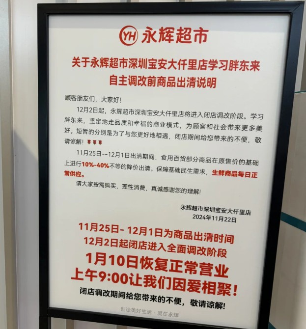 《職業(yè)零售網(wǎng)》獲悉,永輝超市深圳寶安大仟里店將于12月2日進(jìn)入閉店調(diào)改階段,并計(jì)劃于2025年1月20日恢復(fù)正常營業(yè)。這是繼續(xù)卓悅匯店之后,深圳地區(qū)學(xué)習(xí)胖東來調(diào)改的第二家門店。 根據(jù)調(diào)改計(jì)劃,該店將于11月25日至12月1日進(jìn)行商品出清,其中食用百貨類商品將提供10%-40%的折扣優(yōu)惠,生鮮商品則維持每日正常供應(yīng)。 與此同時(shí),永輝超市已經(jīng)啟動了該門店的招聘工作,涵蓋副店長、小店長、收銀員、收貨員等十多個崗位,招聘規(guī)模達(dá)到160余人,薪資水平在6000元至14000元不等。 |