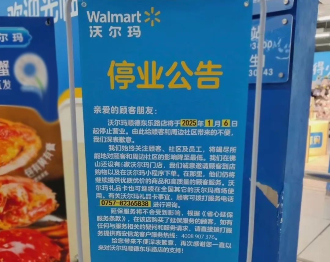 12月7日,沃爾瑪順德東樂路店發(fā)布停業(yè)公告,宣布將于2025年1月6日起停止?fàn)I業(yè)。公告中顯示,該店關(guān)閉后其在佛山還有6家門店,并邀請(qǐng)顧客前往這些門店購(gòu)物或通過小程序下單,同時(shí)禮品卡也可繼續(xù)使用。 對(duì)于沃爾瑪順德東樂路店的關(guān)閉,附近市民紛紛表示不舍,畢竟這家門店已開業(yè)15年之久。據(jù)了解,沃爾瑪順德東樂路店成立于2009年12月15日,是順德中心城區(qū)首批大型超市,也是順德目前唯一一家沃爾瑪大賣場(chǎng)。順德印象城工作人員介紹,未來將會(huì)有新的超市進(jìn)駐,但暫不清楚是哪個(gè)品牌。 |