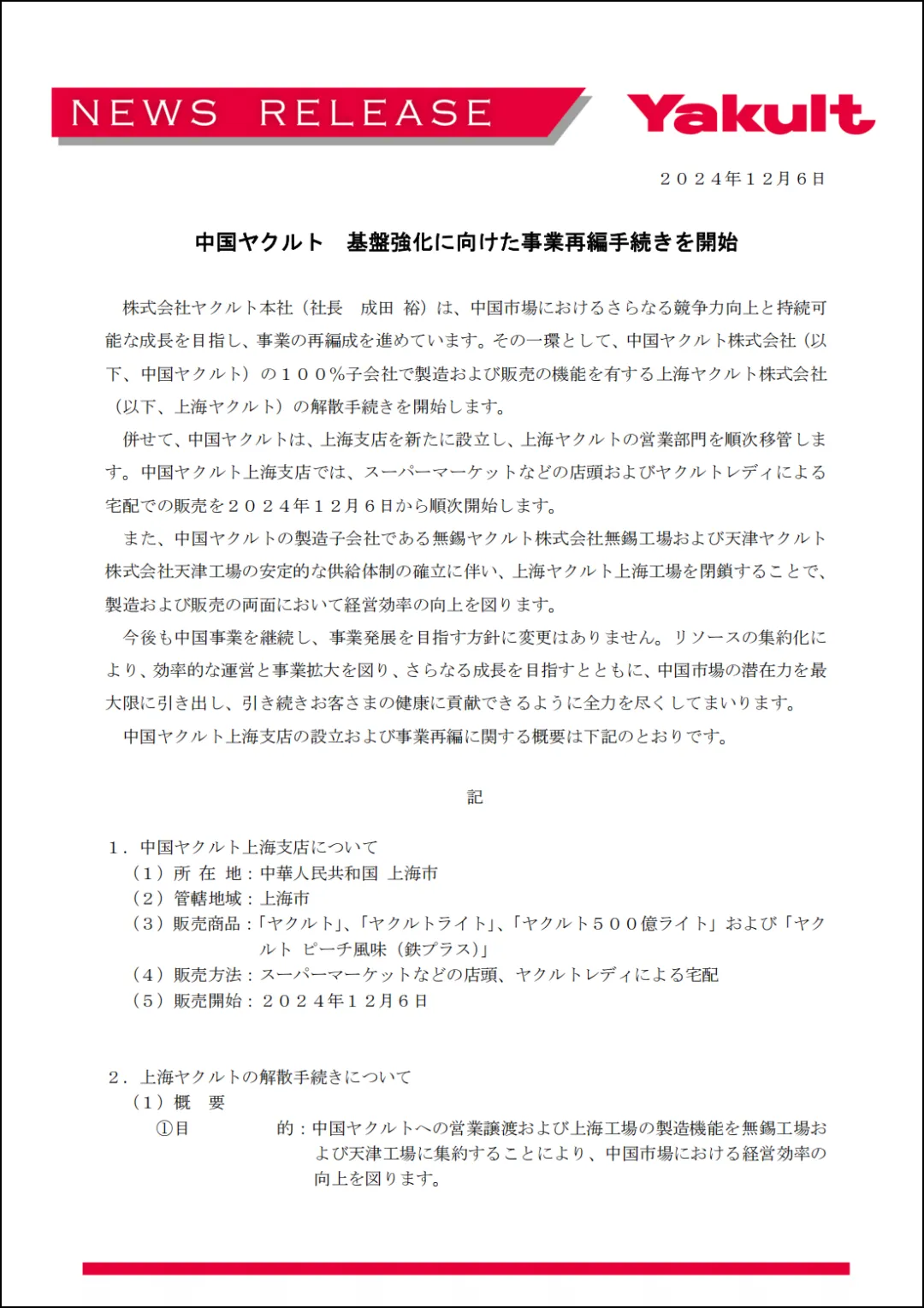 日本飲料巨頭養(yǎng)樂多,曾以一款經(jīng)典單品打遍天下,82年來堅持2.2元每瓶的親民價格。去年,它在中國銷售額達到了65億元。 但近日,養(yǎng)樂多卻宣布關(guān)閉了具有20年歷史的上海工廠,這一舉動引起了行業(yè)的廣泛關(guān)注。 01 關(guān)閉20年上海工廠 據(jù)媒體報道,日本養(yǎng)樂多本社(Yakult Honsha)于12月6日宣布,將關(guān)閉位于中國上海市的生產(chǎn)乳酸菌飲料養(yǎng)樂多的上海工廠。 圖片來源:Yakult Honsha。 定于同一日停產(chǎn),生產(chǎn)將轉(zhuǎn)移至天津工廠和無錫工廠等中國國內(nèi)的其他基地。 據(jù)養(yǎng)樂多官方說法,此舉主要為了優(yōu)化資源配置并減少固定費用支出。目前,大眾點評網(wǎng)上顯示上海養(yǎng)樂多工廠處于“暫停營業(yè)”狀態(tài),其官網(wǎng)也下架了上海工廠及生產(chǎn)基地的相關(guān)信息。 與此同時,為了配合工廠關(guān)閉,具有制造和銷售功能的“上海養(yǎng)樂多乳品有限公司”將啟動解散程序。該公司的營業(yè)部門等將由養(yǎng)樂多本社的全資子公司“養(yǎng)樂多(中國)投資有限公司”接手,以確保業(yè)務(wù)的連續(xù)性和穩(wěn)定性。 此前,養(yǎng)樂多本社還把北京市的當?shù)胤ㄈ恕氨本┭趴扇樘刭Q(mào)易有限公司”合并至養(yǎng)樂多(中國)投資有限公司,以提高效率。 據(jù)了解,截至今年2月,養(yǎng)樂多上海工廠還有正式員工3400人。隨著養(yǎng)樂多上海工廠的關(guān)停,超過3000人將面臨原地解散的命運,著實令人唏噓。 02 在華銷量下滑 與巔峰相比下降近70% 作為國內(nèi)消費者熟知的乳酸菌飲料品牌,養(yǎng)樂多最初以“有益腸道健康”的概念打開知名度,并以大單品“小紅瓶”迅速占領(lǐng)市場。 為了順利進入各地市場,養(yǎng)樂多采取了靈活的品牌命名策略,在珠三角地區(qū)被稱為“益力多”,而在長三角則保持原名“養(yǎng)樂多”。 自2002年踏入中國廣州,2003年進軍上海以來,養(yǎng)樂多(中國)集團經(jīng)過二十余年的快速發(fā)展,已在中國建立了包括廣州(兩處)、天津、無錫(兩處)、佛山在內(nèi)的六大生產(chǎn)基地和53家分公司。同時,還在廣東、上海、北京等多個大城市推出了家庭配送服務(wù),極大地方便了消費者。 圖來源:養(yǎng)樂多。 養(yǎng)樂多上海工廠是Yakult集團在全球的第35家工廠,于2005年落戶嘉定區(qū)伊寧路986號,占地4.6萬平方米。2006年,該工廠竣工投產(chǎn),并向公眾免費開放參觀,截至2019年參觀總?cè)藬?shù)已突破50萬人次。 在養(yǎng)樂多的巔峰時期,其在中國市場的日銷量高達760.9萬瓶,是該細分市場的銷量冠軍。2023年,養(yǎng)樂多在中國的年銷售額達到了65億元,占據(jù)了23%的市場份額。其中,上海益力多乳品有限公司作為養(yǎng)樂多在中國的重要生產(chǎn)基地,一直承擔著重要的生產(chǎn)任務(wù)。 不過,近年來,隨著消費的疲軟以及健康觀念的轉(zhuǎn)變,養(yǎng)樂多在華銷量呈大幅下滑之勢,最終不得不削減產(chǎn)能、并大幅啟動裁員。 2024年2月,以銷售疲軟為由,養(yǎng)樂多上海子公司裁員約800人,約占員工總數(shù)的20%,養(yǎng)樂多上海子公司的員工數(shù)量從約4200人減少至約3400人。 數(shù)據(jù)顯示,截至2023年9月,養(yǎng)樂多在中國市場的日銷售量為253萬瓶,同比降幅為23%。與巔峰時期相比,降幅近70%,這一巨大降幅促使養(yǎng)樂多不得不著手整合中國生產(chǎn)基地。 事實上,面對銷量的大幅下滑,2023年初,養(yǎng)樂多試圖通過漲價來扭轉(zhuǎn)業(yè)績下滑態(tài)勢,其中,在中國全境銷售的2款乳酸菌飲料分別提價8.7%-14.3%不等,但漲價收效甚微,甚至加速其銷量下滑。根據(jù)養(yǎng)樂多本社提供的數(shù)據(jù),該公司在2024年1-6月的日銷售業(yè)績僅為22萬2000瓶。 圖來源:養(yǎng)樂多。 值得注意的是,盡管面臨諸多挑戰(zhàn)和困難,養(yǎng)樂多方面仍表示關(guān)閉上海工廠是推進經(jīng)營改革的一部分。此舉旨在通過重組提高生產(chǎn)效率、整合資源配置以進一步提高銷量和業(yè)績。目前,養(yǎng)樂多上海公司已變更為上海分公司,這標志著運營了20年的上海工廠已經(jīng)正式關(guān)閉。 為了應(yīng)對國內(nèi)消費需求的轉(zhuǎn)變和市場競爭的挑戰(zhàn),養(yǎng)樂多中國品牌方正在加速推進經(jīng)營改革和創(chuàng)新發(fā)展。包括研發(fā)新產(chǎn)品、加大電商渠道布局、優(yōu)化資源配置等舉措在內(nèi)的多項改革措施正在緊鑼密鼓地推進中。 03 行業(yè)整體承壓 有分析認為,養(yǎng)樂多銷量的下滑主要是因為消費者健康觀念正發(fā)生轉(zhuǎn)變。 近年來,養(yǎng)樂多的“健康理念”頻被大眾質(zhì)疑,以養(yǎng)樂多經(jīng)典原味小紅瓶的配方為例,其主要成分為水、白砂糖、脫脂乳粉、葡萄糖、活性乳酸菌等,其中碳水化合物的含量高達5.7g/100ml。根據(jù)現(xiàn)行上海試點飲料分級制度,養(yǎng)樂多小紅瓶被歸類為最不推薦的D級。也就是說,曾經(jīng)備受追捧的養(yǎng)樂多遭受廣泛質(zhì)疑,其銷量自然而然地呈下滑趨勢。 事實上,國內(nèi)乳酸菌飲料近年來整體銷售承壓。來自馬上贏品牌CT的數(shù)據(jù)顯示,乳酸菌飲料類目自2022年至2024年,整體呈現(xiàn)出均價、份額雙雙下滑的趨勢。此外,乳酸菌飲料的CR10集團市場份額合計超過70%,行業(yè)集中度整體較高;排名