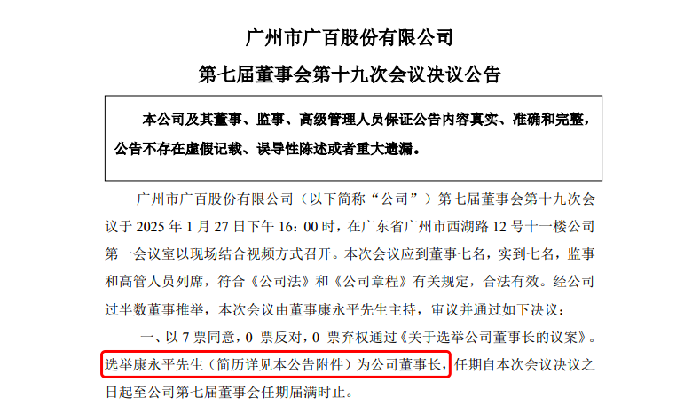 2月4日,廣百股份發(fā)布第七屆董事會(huì)第十九次會(huì)議決議公告顯示,董事會(huì)選舉康永平先生為董事長(zhǎng)。 康永平先生擁有豐富的酒店及旅游業(yè)管理經(jīng)驗(yàn),曾任廣州中國(guó)大酒店副總經(jīng)理、廣州市廣州賓館有限公司黨委書(shū)記、總經(jīng)理等職位,目前擔(dān)任公司黨委書(shū)記、董事長(zhǎng),未持有公司股份。 會(huì)議還調(diào)整了董事會(huì)專(zhuān)業(yè)委員會(huì)成員,包括戰(zhàn)略委員會(huì)、薪酬與考核委員會(huì)、提名委員會(huì)的主任委員及委員。 同時(shí),公司對(duì)組織架構(gòu)進(jìn)行了調(diào)整,包括將數(shù)字化管理中心更名為數(shù)智化中心,物業(yè)管理中心更名為物業(yè)與工程管理中心,新設(shè)創(chuàng)新研發(fā)與品牌中心、營(yíng)運(yùn)中心以及采購(gòu)中心。 |