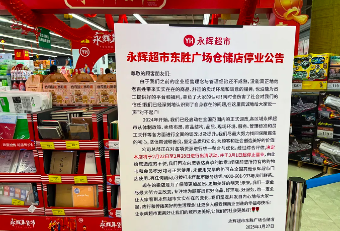 近日,永輝超市石家莊東勝廣場倉儲店發(fā)布停業(yè)公告,宣布將于3月1日起停止?fàn)I業(yè),并在2月22日至2月28日進(jìn)行出清活動。閉店前顧客所持有的購物卡和會員積分均可正常使用,未使用完畢的可在全國其他永輝超市門店使用。 據(jù)石家莊日報,永輝東勝廣場倉儲店在經(jīng)過重新裝修與升級調(diào)整之后,于2021年7月30日重新開門迎客,運(yùn)營至今已有3年多時間。然而,根據(jù)公司總部的統(tǒng)一規(guī)劃與資源整合策略,該店被納入了優(yōu)化調(diào)整的范疇,因此做出了停業(yè)的決定。 此外,永輝超市官網(wǎng)數(shù)據(jù)顯示,截至2025年2月9日,公司開業(yè)門店數(shù)量達(dá)776家。這一數(shù)據(jù)較2023年末1000家已減少224家。對于門店優(yōu)化動作,永輝方面在去年10月底接受記者采訪時曾表示,短期來看,增加了一定的閉店成本,但中長期而言,“減脂瘦身”將促進(jìn)公司盤面健康,將資源向優(yōu)質(zhì)門店集中,進(jìn)一步提升經(jīng)營效率。 |