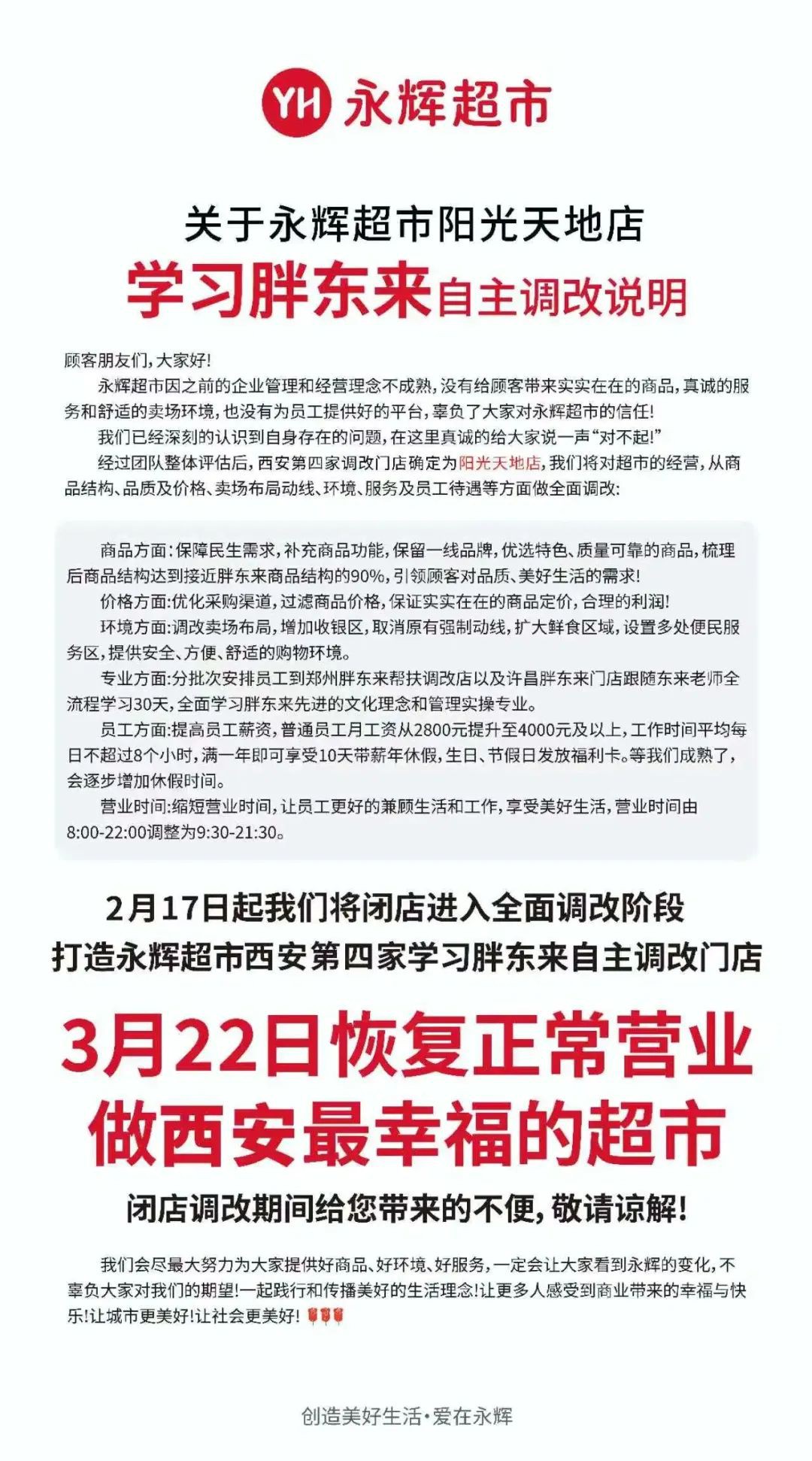 近日,陜西永輝超市發(fā)布消息稱,經(jīng)過調(diào)改組整體評(píng)估后,確定西安第四家自主調(diào)改門店為陽光天地店,這也是長安區(qū)首家調(diào)改門店。 |