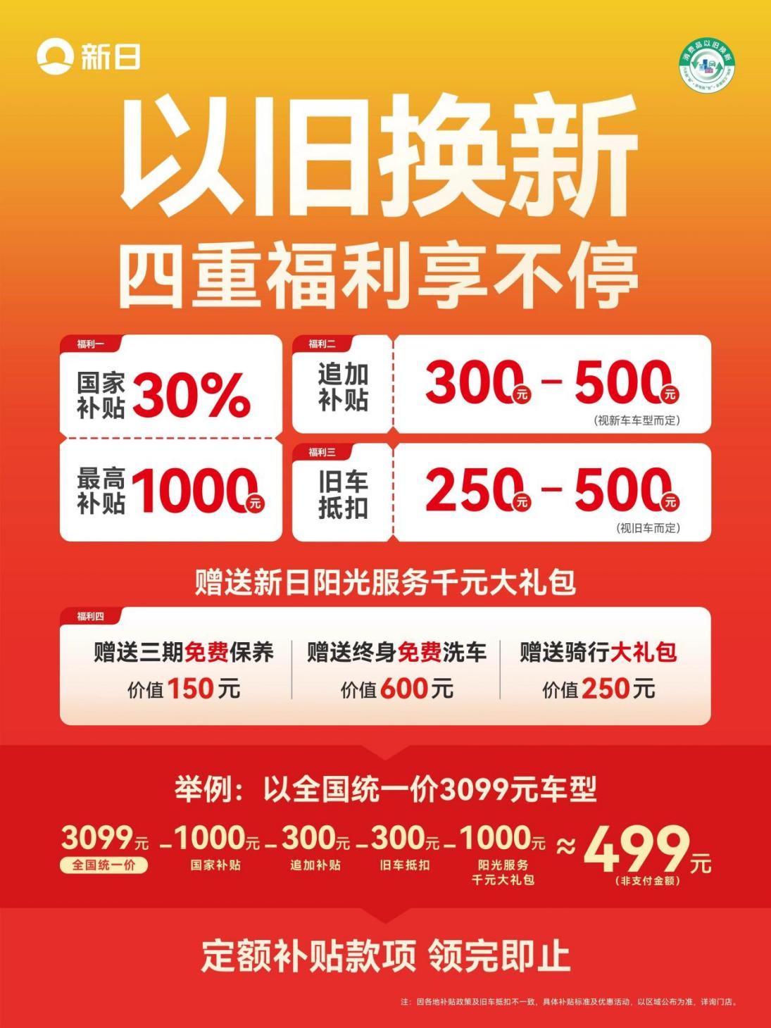 這個3月,對想要置換新車的小伙伴們來說,簡直是天大的“福音”。不僅新車扎堆涌現(xiàn),從高顏值的,到高性能的,再到全能六邊形戰(zhàn)士一應(yīng)俱全,連置換政策也是開年最強(qiáng)的一波,火力全開,給「利」到底!特別是兩輪電動車先鋒品牌新日,積極響應(yīng)國家號召,即日起至2025年12月31日,重磅推出“2025全民換新日”惠民行動,以四重豪禮,惠及廣大消費(fèi)者,助力升級騎行品質(zhì)。不僅國家補(bǔ)貼直降,最高立省1200元,新日在此基礎(chǔ)上,補(bǔ)貼加碼,爆款車型享300-500元專項補(bǔ)貼。與此同時,舊車最高補(bǔ)貼500元,更贈送價值千元的新日陽光服務(wù),絕對是當(dāng)下最不容錯過的購車好時機(jī)!別等錯過才后悔! 空前「利」度,惠不容緩 全民換新日,一「騎」向美好 以舊換新不僅是踐行綠色發(fā)展理念的生動寫照,也是讓生活不將「舊」,煥新品質(zhì)的有力舉措。 新日深刻理解大眾對生活煥新的向往,精心準(zhǔn)備了四重豪禮!讓消費(fèi)者以最實在的價格,享受更高的騎行品質(zhì)。與以往相比,此番推出的優(yōu)惠盛宴,堪稱“豪氣沖天”!真金白銀的讓利力度,省上加省的購車體驗,讓消費(fèi)者的每一分錢都花在刀刃上!買到即是賺到! 一重驚喜:政府補(bǔ)貼再加碼,最高立省1200!2025年,各地政府政策力度再升級,以浙江為例,舊車換新可享政府最高1200元補(bǔ)貼。新日作為工信部認(rèn)證的“白名單”企業(yè),產(chǎn)品品質(zhì)過硬,合規(guī)有保障,將率先享受這一政策福利,讓消費(fèi)者購車更實惠。 二重驚喜:企業(yè)補(bǔ)貼更給力,爆款車型特惠購!活動期間,用戶將享受到新日一系列爆款車型的超值特惠價,最高追加補(bǔ)貼500元!從霸榜熱銷的新日凱迪拉氪,到新晉網(wǎng)紅旗艦車型新日甜心,無論是“炫酷騎行伴侶”還是“機(jī)甲風(fēng)格戰(zhàn)車”,亦或是女神們的“夢想座駕”,新日全面覆蓋各類市場需求,總有一款能擊中你的心。 三重驚喜:舊車抵扣無煩惱,最高可抵500元!無論舊車是何品牌、何型號,均可現(xiàn)場進(jìn)行專業(yè)評估,根據(jù)舊車狀況,可折價250~500元抵扣新車購車款,讓消費(fèi)者換車更省心。 四重驚喜:陽光服務(wù)大禮包,價值千元等你享!活動期間,參與以舊換新活動,即可享受價值千元的新日陽光服務(wù)大禮包,包含三期免費(fèi)保養(yǎng)、終身免費(fèi)洗車、騎行大禮包。全方位呵護(hù)您的出行生活,讓您的騎行之路更加無憂。 積極響應(yīng)國家政策,多維發(fā)力 新日領(lǐng)跑“以舊換新”全國市場 自五部委聯(lián)合發(fā)布電動車以舊換新政策以來,新日全方位發(fā)力,引領(lǐng)“以舊換新”的全國市場,成功掀起了“全民煥新騎行”的熱潮。目前已有超6000家門店參與,共同見證了以舊換新交易額刷新紀(jì)錄的歷史性時刻,這一數(shù)據(jù)不僅彰顯了活動的巨大影響力,也反映了消費(fèi)者對這一政策的熱烈響應(yīng)。 新日電動車憑借“政府補(bǔ)貼助力、舊車高額抵價”等多重福利政策的疊加效應(yīng),高效推動了電動車用戶享受政策紅利,讓換購新車變得前所未有的輕松便捷。這一系列舉措不僅減輕了消費(fèi)者的經(jīng)濟(jì)負(fù)擔(dān),更激發(fā)了市場活力,促進(jìn)了電動車行業(yè)的綠色發(fā)展。 更難得是,新日沒有“;ㄇ弧保脺N的舊款去應(yīng)付了事,不止是新日甜心這款開年出品的旗艦車型在以舊換新的行列,還有多款其他的爆款車型。這些車型不僅外觀時尚、線條流暢,展現(xiàn)出極高的設(shè)計美學(xué),更在性能上實現(xiàn)了質(zhì)的飛躍,無論是動力輸出還是續(xù)航能力均達(dá)到了行業(yè)領(lǐng)先水平。讓每一個用戶,都能感到被重視、被滿足,進(jìn)一步激發(fā)了消費(fèi)者的參與熱情,為推動電動車行業(yè)的可持續(xù)發(fā)展貢獻(xiàn)了重要力量。 結(jié)語 在全國各省市積極倡導(dǎo)的浪潮下,“以舊換新”已成為電動車行業(yè)年終市場的主旋律。相信新日憑借更加豐富多元的高品質(zhì)產(chǎn)品系列、更加貼心實惠的政策優(yōu)惠,以及始終如一的卓越品質(zhì),為廣大消費(fèi)者帶來前所未有的超值換購享受,讓每一次選擇都成為一次智慧與價值的雙重升級。 |