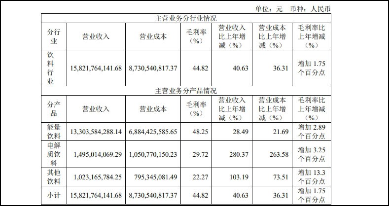 3月7日,東鵬飲料發(fā)布2024年年度報(bào)告,公司營收158.39億元,同比增長40.63%;歸屬于上市公司股東的凈利潤33.27億元,同比增長63.09%。公司方面表示,這一成績主要得益于報(bào)告期內(nèi)銷售規(guī)模和效益的高速發(fā)展。 從產(chǎn)品板塊來看,東鵬飲料主要分為能量飲料、電解質(zhì)飲料和其他飲料三大板塊。其中,能量飲料在2024年?duì)I收達(dá)到133.04億元,占比超過八成,毛利率高達(dá)48.25%,居產(chǎn)品線首位。這一板塊毛利率較去年增加了2.89%,主要得益于原材料價(jià)格下降,使得產(chǎn)品成本降低。 值得注意的是,電解質(zhì)飲料成為東鵬飲料增長最快的細(xì)分品類,2024年?duì)I收同比增長280.37%。這一高速增長顯示出公司在產(chǎn)品多元化方面的潛力和市場適應(yīng)能力。 在市場區(qū)域方面,東鵬飲料的主要銷售區(qū)域涵蓋了廣東、華東、華中、華北、廣西及西南等市場,合計(jì)收入占比約84.50%。其中,廣東區(qū)域依然是收入最高的區(qū)域,2024年實(shí)現(xiàn)營業(yè)收入43.60億元,同比增長15.93%,營收占比為27.56%。 然而,隨著全國化戰(zhàn)略的推進(jìn),廣東以外區(qū)域的占比正在逐漸上升。華北區(qū)域和西南區(qū)域的收入增長尤為迅猛,增長率分別達(dá)到83.85%和54.65%,高于全國區(qū)域的增長率。這主要得益于公司通過夯實(shí)業(yè)務(wù)基礎(chǔ)、完善經(jīng)銷體系、開拓終端網(wǎng)點(diǎn)、加強(qiáng)終端陳列及把握新消費(fèi)機(jī)會等方式,有效促進(jìn)了銷量的快速增長。 東鵬飲料的核心產(chǎn)品東鵬特飲在2024年繼續(xù)在市場上表現(xiàn)出色。根據(jù)尼爾森IQ數(shù)據(jù),東鵬特飲在中國能量飲料市場的銷售量占比從2023年的43.0%提升至47.9%,連續(xù)四年成為中國銷售量最高的能量飲料;銷售額份額也從30.9%上升至34.9%。這進(jìn)一步鞏固了東鵬特飲在能量飲料領(lǐng)域的領(lǐng)先地位。 在謀求國內(nèi)區(qū)域結(jié)構(gòu)優(yōu)化的同時(shí),東鵬飲料也在積極開拓國際市場,東南亞市場是其重點(diǎn)發(fā)力方向。財(cái)報(bào)顯示,截至2024年末,東鵬飲料的產(chǎn)品已出口至越南、馬來西亞、美國等25個(gè)國家和地區(qū)。公司已在印度尼西亞和越南設(shè)立子公司,并且正在建設(shè)中的海南和昆明生產(chǎn)基地將作為未來面向東南亞市場的重要生產(chǎn)及出口樞紐。 值得注意的是,在營利增長的同時(shí),東鵬飲料2024年的銷售費(fèi)用也有所上升,較去年同期增長37.09%。公司解釋稱,這主要是由于職工薪酬支出增加24.77%、廣告宣傳費(fèi)增長54.45%以及渠道推廣費(fèi)增長54.03%所致。這些增加的費(fèi)用主要用于推進(jìn)全國化戰(zhàn)略實(shí)施,擴(kuò)大銷售規(guī)模,增加銷售人員人數(shù),加大宣傳和渠道推廣投入,尤其是冰柜的投放。 財(cái)報(bào)還指出,2024年公司不斷優(yōu)化產(chǎn)品結(jié)構(gòu)和客戶結(jié)構(gòu),積極加強(qiáng)開拓全國市場傳統(tǒng)渠道,進(jìn)一步提升產(chǎn)品的整體鋪市率與覆蓋廣度;同時(shí)打造多品類產(chǎn)品線,滿足不同場景及人群需求,推出差異化產(chǎn)品,拓展消費(fèi)者群體,并通過線上線下多維度推廣,持續(xù)贏得消費(fèi)者信賴與復(fù)購,從而實(shí)現(xiàn)了銷售收入的顯著增長。 同日,東鵬飲料還發(fā)布公告稱,公司擬發(fā)行H股股票并在香港聯(lián)合交易所有限公司主板掛牌上市。目前,公司正與相關(guān)中介機(jī)構(gòu)就本次發(fā)行并上市的相關(guān)工作進(jìn)行商討。此次擬赴港上市,東鵬飲料表示,旨在進(jìn)一步提高公司的資本實(shí)力和綜合競爭力,提升公司國際化品牌形象,滿足國際業(yè)務(wù)發(fā)展需要,深入推進(jìn)全球化戰(zhàn)略。 |