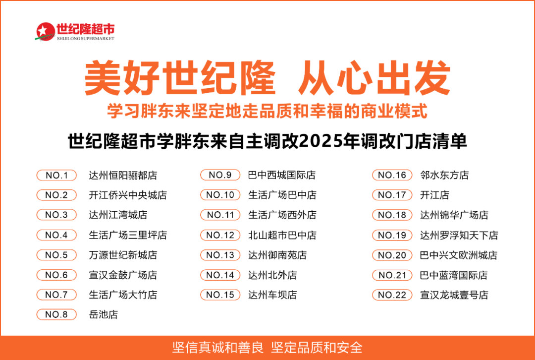 今年2月,永輝超市率先公布學(xué)習(xí)胖東來調(diào)改的首批20家門店,調(diào)改工作正有序推進(jìn),預(yù)計(jì)3月下旬陸續(xù)開業(yè)。隨后,步步高、安徽綠籃子等企業(yè)也先后公布調(diào)改名單,加入這場(chǎng)零售變革的浪潮。與此同時(shí),中百、貴州合力、真實(shí)惠等超市企業(yè)雖未公布名單,但調(diào)改工作也在持續(xù)進(jìn)行。 在這樣的行業(yè)趨勢(shì)下,達(dá)州世紀(jì)隆也于近日公示了其門店調(diào)改計(jì)劃,繼續(xù)學(xué)習(xí)胖東來模式,并計(jì)劃全年對(duì)22家門店進(jìn)行調(diào)改。 3月10日,達(dá)州世紀(jì)隆超市發(fā)布了《學(xué)習(xí)胖東來自主調(diào)改2025年調(diào)改門店清單》,正式啟動(dòng)2025年新一輪調(diào)改計(jì)劃,并公布第一輪調(diào)改門店清單。第一輪調(diào)改涉及10家門店,分別為達(dá)州恒陽(yáng)驪都店、開江僑興中央城店、達(dá)州江灣城店、生活廣場(chǎng)三里坪店、萬源世紀(jì)新城店、宣漢金鼓廣場(chǎng)店、生活廣場(chǎng)大竹店、岳池店、巴中西城國(guó)際店以及生活廣場(chǎng)巴中店。 據(jù)悉,世紀(jì)隆超市作為聯(lián)商?hào)|來總裁班學(xué)員企業(yè),自2024年4月便開啟了學(xué)習(xí)胖東來調(diào)改之路。截至農(nóng)歷新年前,已成功完成6家門店的調(diào)改工作。這些調(diào)改店在春節(jié)期間成績(jī)斐然,熟食區(qū)銷售額同比增長(zhǎng)283%,面包區(qū)銷售額同比增長(zhǎng)196%,水果區(qū)銷售額同比增長(zhǎng)216%,成為拉動(dòng)業(yè)績(jī)?cè)鲩L(zhǎng)的強(qiáng)勁動(dòng)力,為二次調(diào)改奠定了堅(jiān)實(shí)基礎(chǔ)。 此次世紀(jì)隆超市再度開啟新一輪調(diào)改計(jì)劃,也是一場(chǎng)關(guān)乎品質(zhì)與溫度的零售革命,重點(diǎn)將在兩大方向上發(fā)力: 2025年,世紀(jì)隆將持續(xù)堅(jiān)定不移地向胖東來學(xué)習(xí),秉持真誠(chéng)與善良,堅(jiān)守品質(zhì)與安全。追光而行,承接美好,創(chuàng)造美好,踐行和傳播美好的生活理念,讓更多人感受商業(yè)帶來的幸福與快樂,為城市與社會(huì)的美好貢獻(xiàn)力量。 一、員工幸福計(jì)劃 世紀(jì)隆深知,員工的幸福感是服務(wù)質(zhì)量的基石。2025年,世紀(jì)隆進(jìn)一步升級(jí)員工關(guān)懷政策:1)春節(jié)放假:首次執(zhí)行“春節(jié)放假一天”政策,讓員工與家人共享團(tuán)圓時(shí)光;2)新增員工福利:為員工發(fā)放春節(jié)福利,制定個(gè)性化職業(yè)發(fā)展規(guī)劃,同時(shí)增加12天年休假,不斷提升員工滿意度。 二、堅(jiān)定選品原則 整體精簡(jiǎn)SKU,每個(gè)中分類和小分類更加精簡(jiǎn)。調(diào)改后,門店商品結(jié)構(gòu)持續(xù)優(yōu)化,達(dá)到胖東來商品結(jié)構(gòu)的90%,以品質(zhì)為優(yōu)先。既保留一、二線品牌和本地地標(biāo)性特色產(chǎn)品,保障基本民生需求,又補(bǔ)充時(shí)尚商品等新增品類。同時(shí),嚴(yán)把商品檢測(cè)關(guān),所有進(jìn)入賣場(chǎng)的商品均需經(jīng)過嚴(yán)格檢測(cè),確保商品安全、實(shí)用、實(shí)在、時(shí)尚。 官網(wǎng)資料顯示,達(dá)州市世紀(jì)隆超市有限公司(以下簡(jiǎn)稱“達(dá)州世紀(jì)隆”)成立于2004年,總部位于四川省達(dá)州市,是一家專注于區(qū)域零售市場(chǎng)的企業(yè)。公司主營(yíng)業(yè)務(wù)涵蓋超市連鎖經(jīng)營(yíng)和社區(qū)購(gòu)物中心運(yùn)營(yíng)等,形成了包括世紀(jì)隆生活廣場(chǎng)社區(qū)購(gòu)物中心、世紀(jì)隆超市、世紀(jì)隆超市黑金店以及世紀(jì)隆集市在內(nèi)的四大業(yè)態(tài)。 經(jīng)過多年發(fā)展,達(dá)州世紀(jì)隆已在四川省內(nèi)多地布局,門店總數(shù)達(dá)56家,覆蓋達(dá)州市、巴中市、廣安市、成都溫江區(qū)、德陽(yáng)羅江區(qū)等多個(gè)地市縣。其中,截至3月10日,達(dá)州世紀(jì)隆超市擁有45家門店,主要分布在達(dá)州市、巴中市、廣安市等地區(qū)。 今年3月3日,在世紀(jì)隆2025年度業(yè)務(wù)大會(huì)上,董事長(zhǎng)彭福興提出“真、善、美”作為2025年度關(guān)鍵詞,成為公司發(fā)展的核心指引。 業(yè)務(wù)副總杜志蘭表示:“學(xué)習(xí)行業(yè)標(biāo)桿胖東來,不能僅僅停留在表面模仿,而是要做到形神兼?zhèn)。踐行以人為本,以品質(zhì)為核心,以服務(wù)為保障,以愛為底色,以美好為目標(biāo)! 此外,公司明確了營(yíng)運(yùn)方向與員工薪酬福利優(yōu)化策略,堅(jiān)定踏上品質(zhì)零售之路。一方面,提高一線品牌及進(jìn)口商品在商品結(jié)構(gòu)中的占比;另一方面,專門設(shè)立品質(zhì)管理部,對(duì)商品從源頭采購(gòu)、運(yùn)輸、入庫(kù)、上架銷售到售后服務(wù)全流程進(jìn)行嚴(yán)格檢測(cè)與精細(xì)品控,全方位打造高品質(zhì)零售模式。同時(shí),穩(wěn)步推進(jìn)員工幸福提升規(guī)劃,涵蓋優(yōu)化工作安排、目標(biāo)設(shè)定、策略實(shí)施與評(píng)估等環(huán)節(jié),重點(diǎn)關(guān)注員工尊重、工作環(huán)境優(yōu)化、生日關(guān)懷及假期增加等福利。 2025年,世紀(jì)隆將繼續(xù)以真誠(chéng)與善良為指引,堅(jiān)守品質(zhì)與安全,踐行美好生活理念,為更多人帶來幸福與快樂,為社會(huì)貢獻(xiàn)更多力量。 最后, 經(jīng)過2025年春